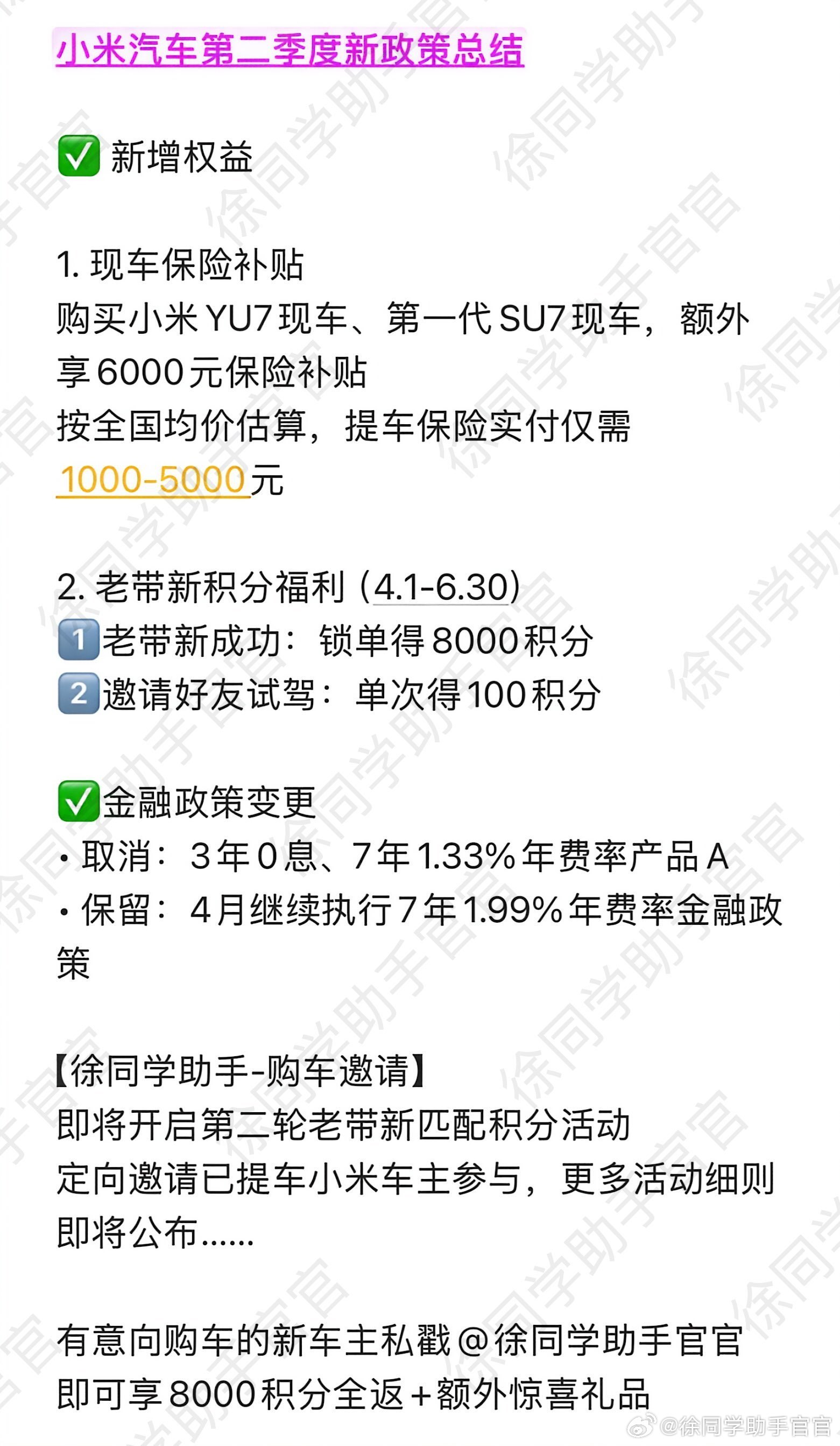 小米汽车第二季度政策公布,简单总结:保险政策加码,购车邀请又回归了,经融政策退坡