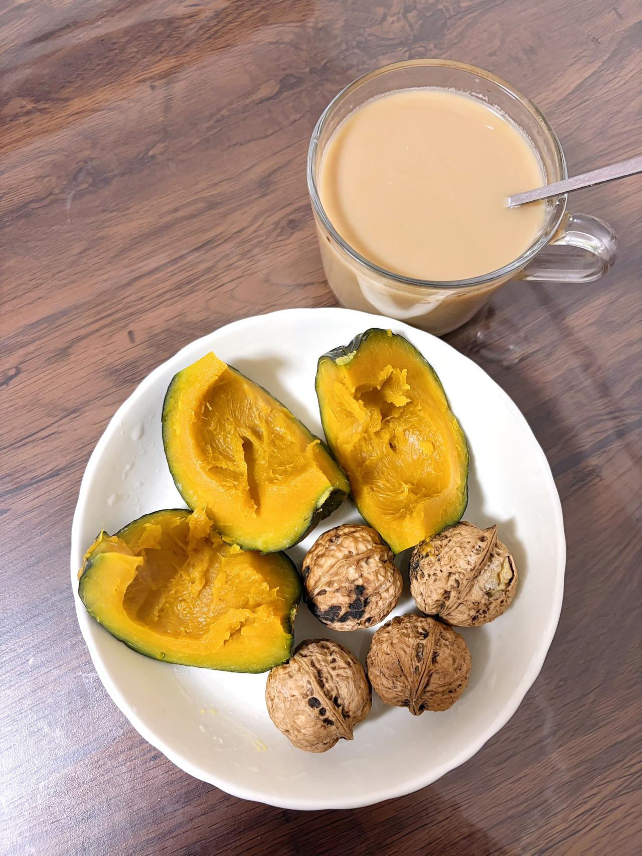 自律减脂健康餐,目标95斤,加油 今日减脂早餐:南瓜+核桃+奶咖 体重管理体重管理减脂早餐自律减脂健康餐