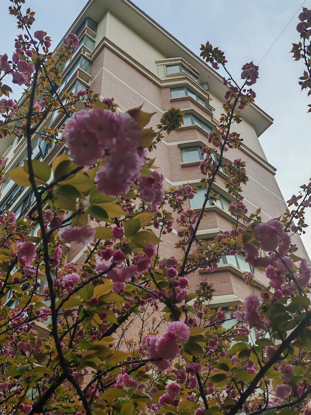 春日生活打卡季我们小区的晚樱,粉色花朵温柔又浪漫,点亮了春天。