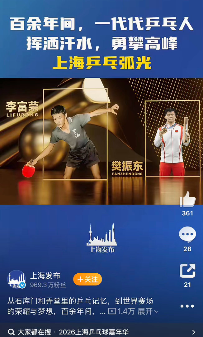 大白话:乒乓球项目的金牌,别搞世袭制,上海有实力,上海想要。
