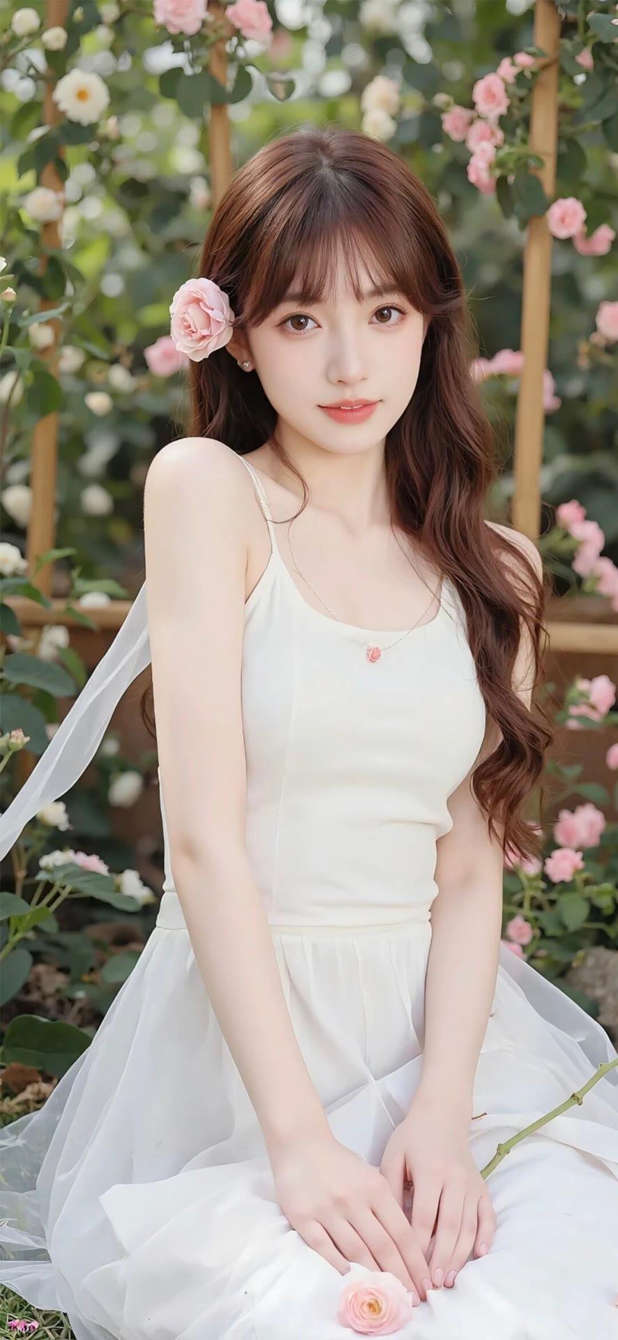 梦幻少女,粉色花瓣中,一袭黄粉渐变裙,宛如童话中的公主。