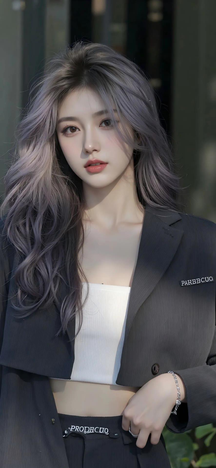温柔阳光下的甜美少女,浅灰色针织衫搭配浅棕色裤子,清新自然。
