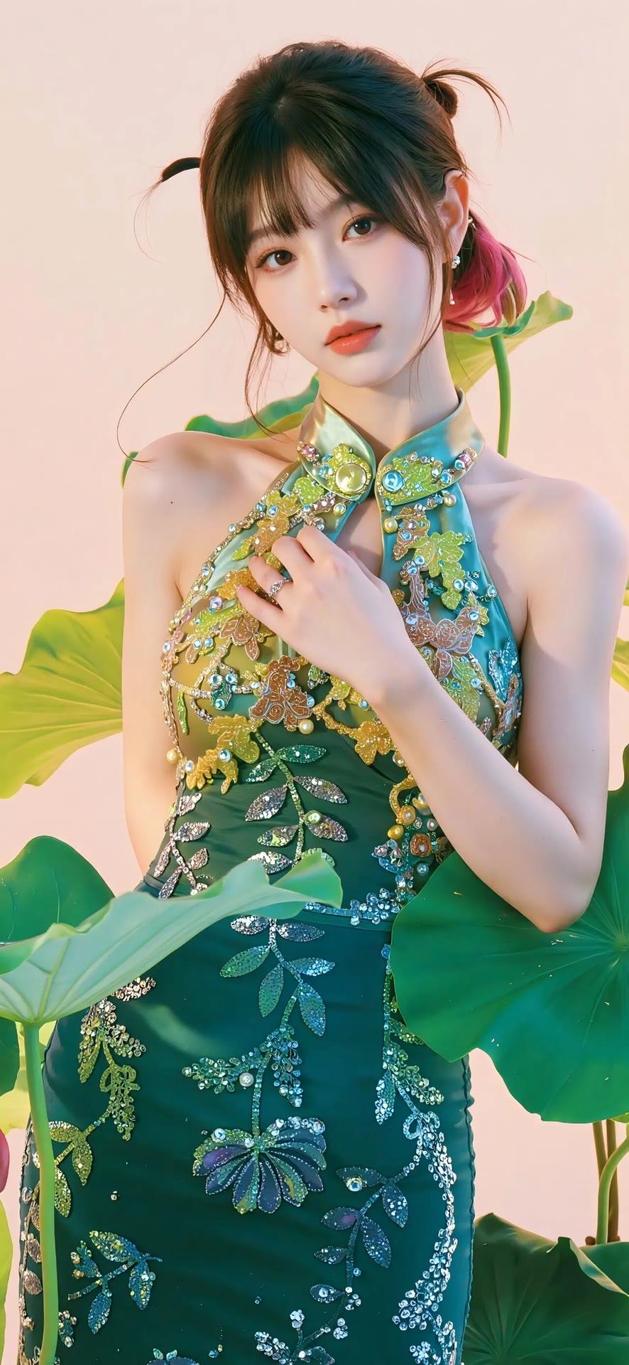 温婉优雅的东方美人,粉色旗袍尽显古典韵味。