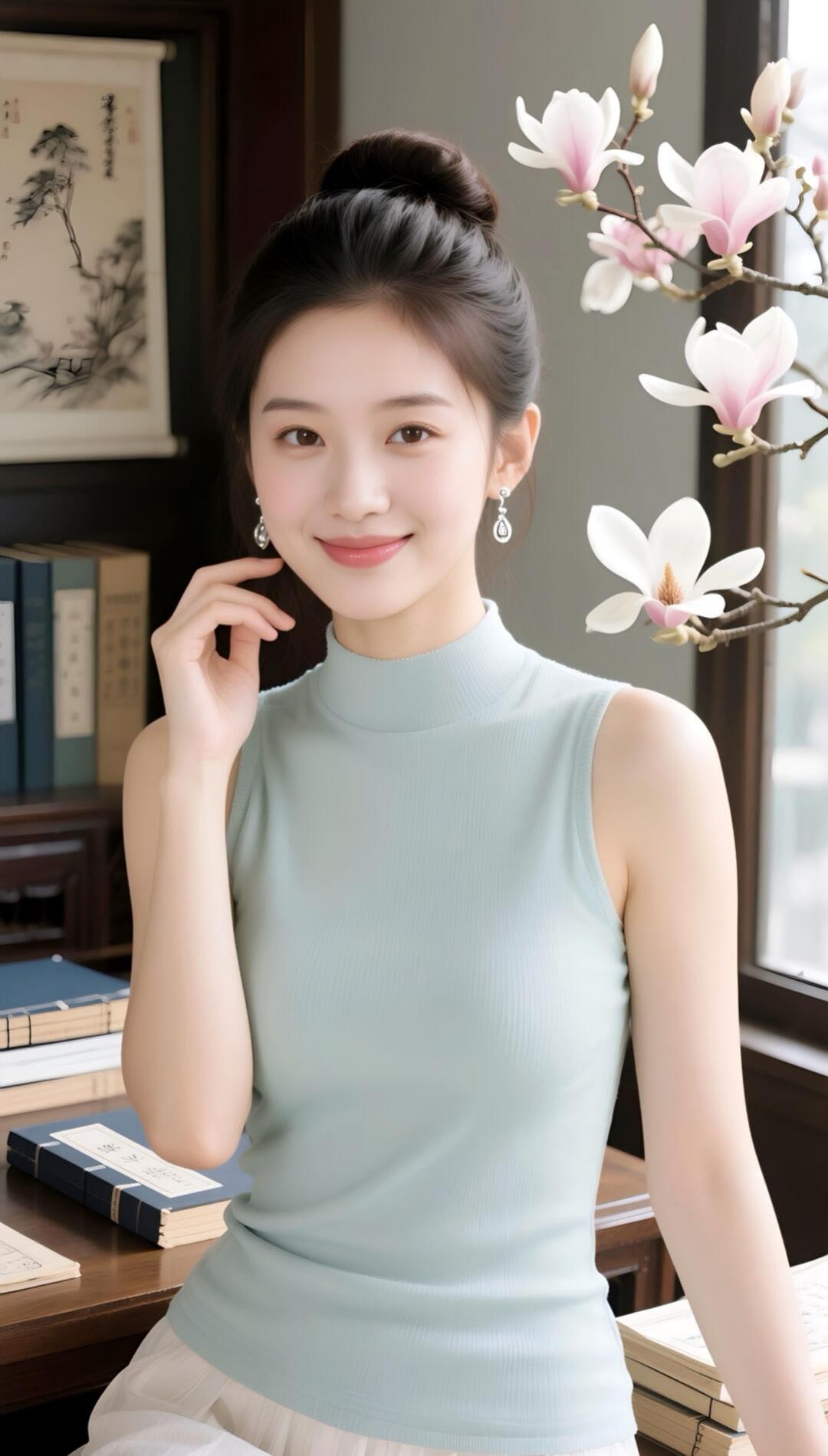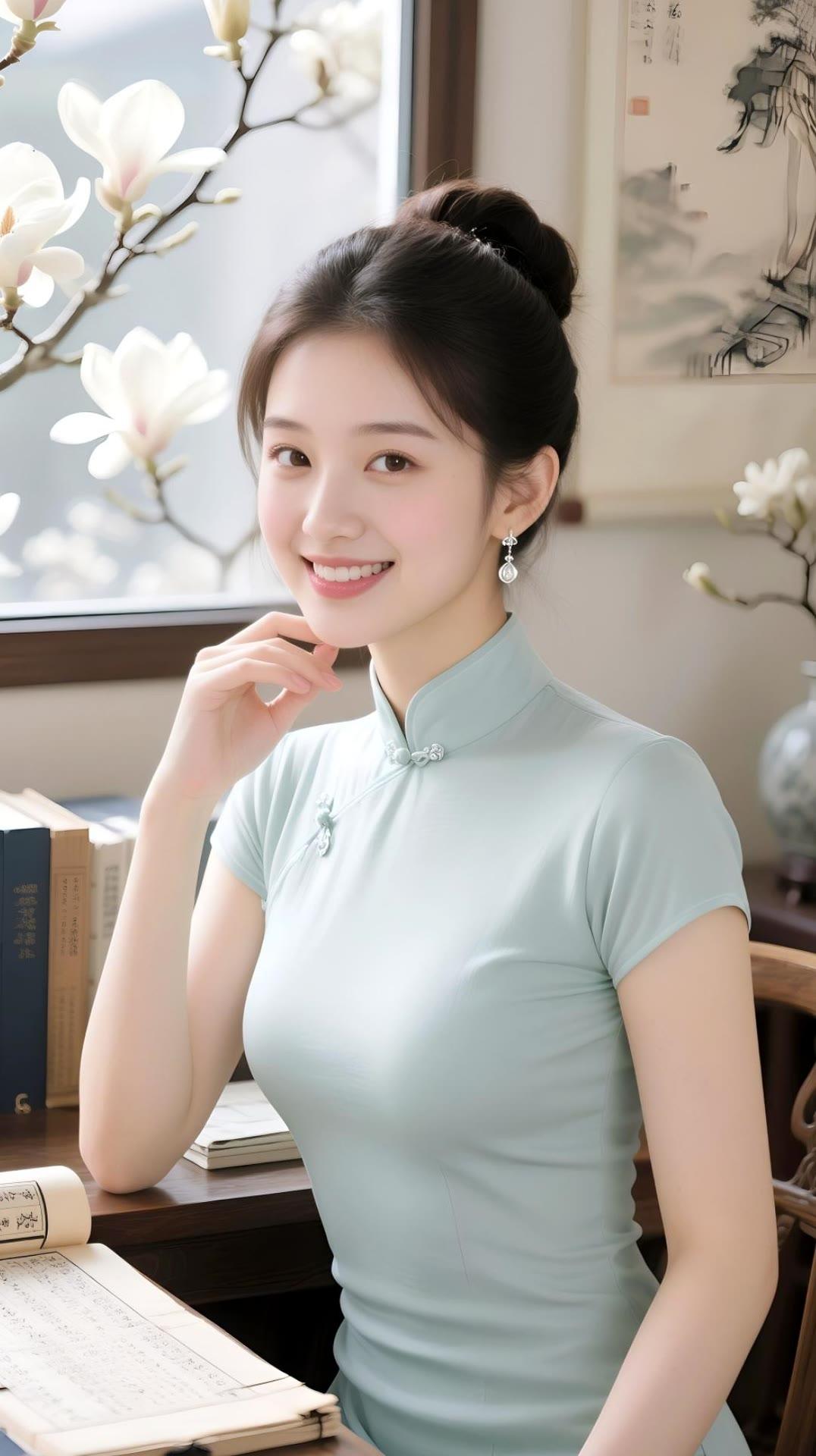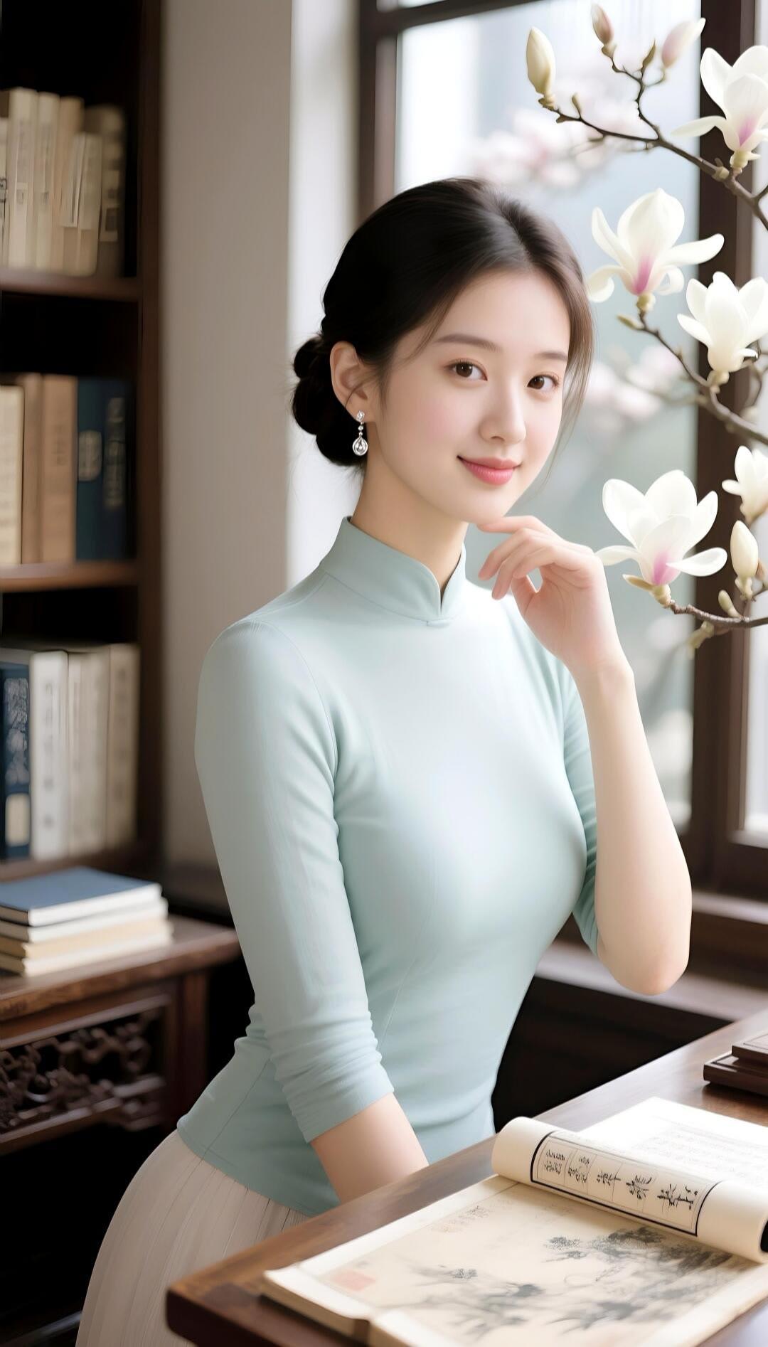 温婉优雅的东方美人,粉色旗袍尽显古典韵味。