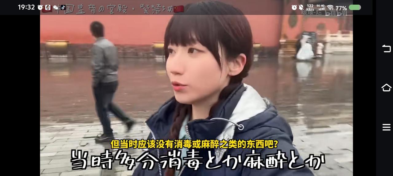 日本女子游故宫的“严重后果”—— 网上视频:一日本女子游故宫,看到某宫殿,说:“这据说是精英们的‘高考’场地,通过了考试的男性,要被切割下体,‘今天起,你是宦官了!’当时没有麻醉药吧,很痛……” 点评: 日本小妹,你一来把中国进士们的命根切了?太狠了吧?字幕君说你把“进士”和“宦官”搞混了。 哪位大侠在日本?游览一下,解说一下日本皇族及知识分子,必须先把他们的“根”说没了。两个根。生理与精神。