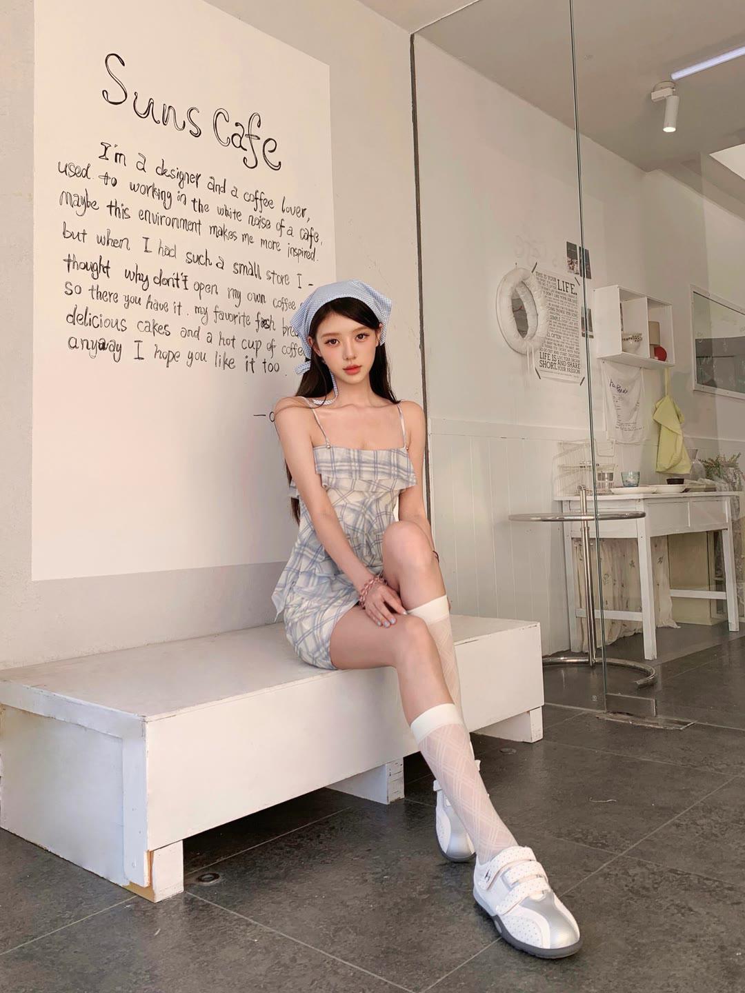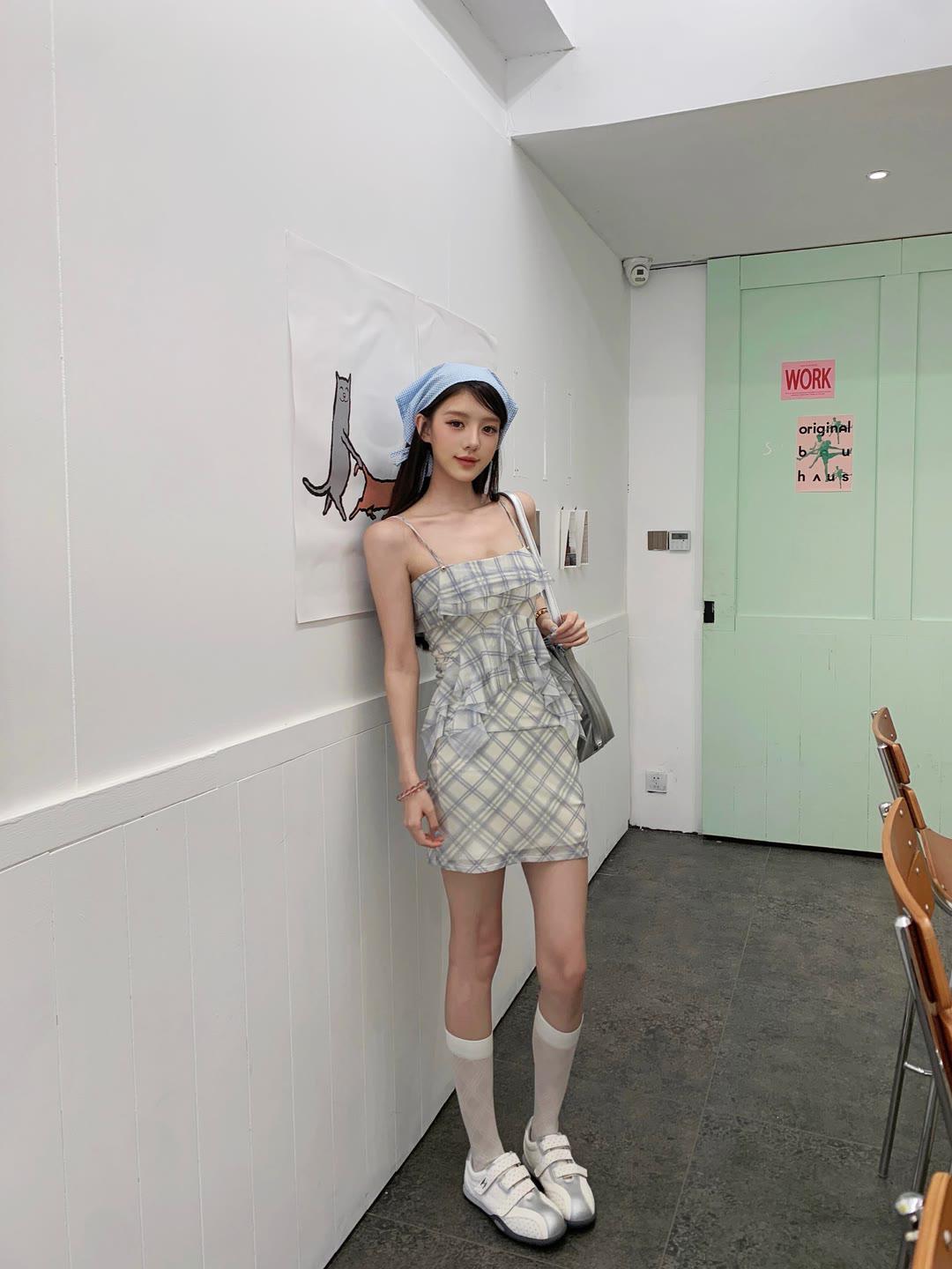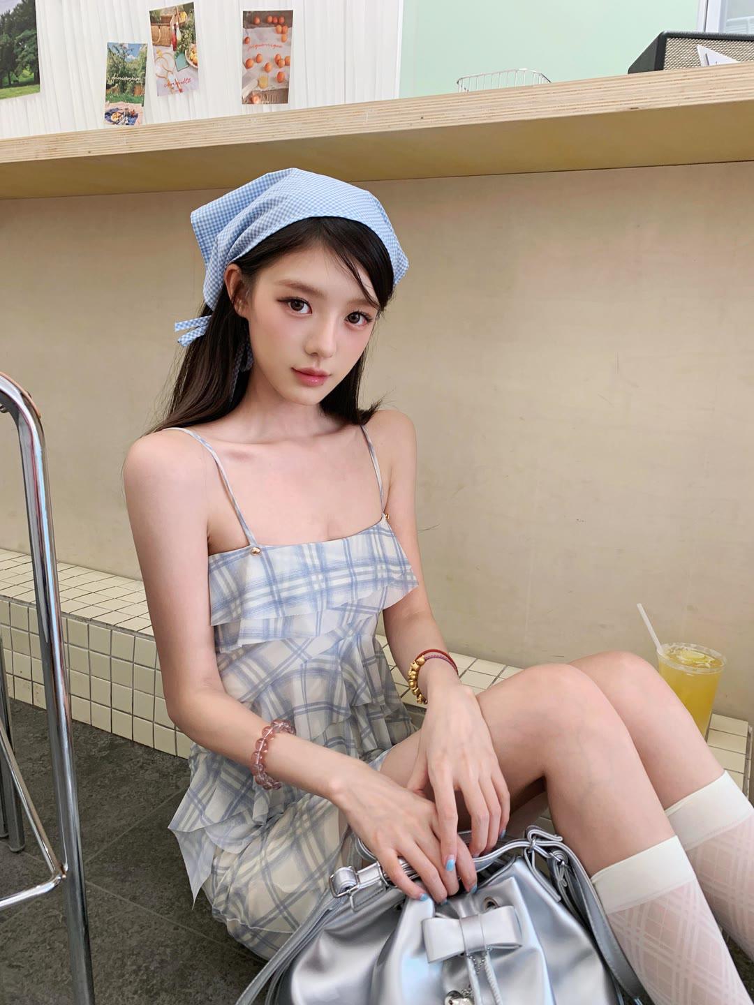浅粉色小香风挂脖套装也太温柔了吧~粗花呢质感高级,挂脖露肩显直角肩,荷叶边+
