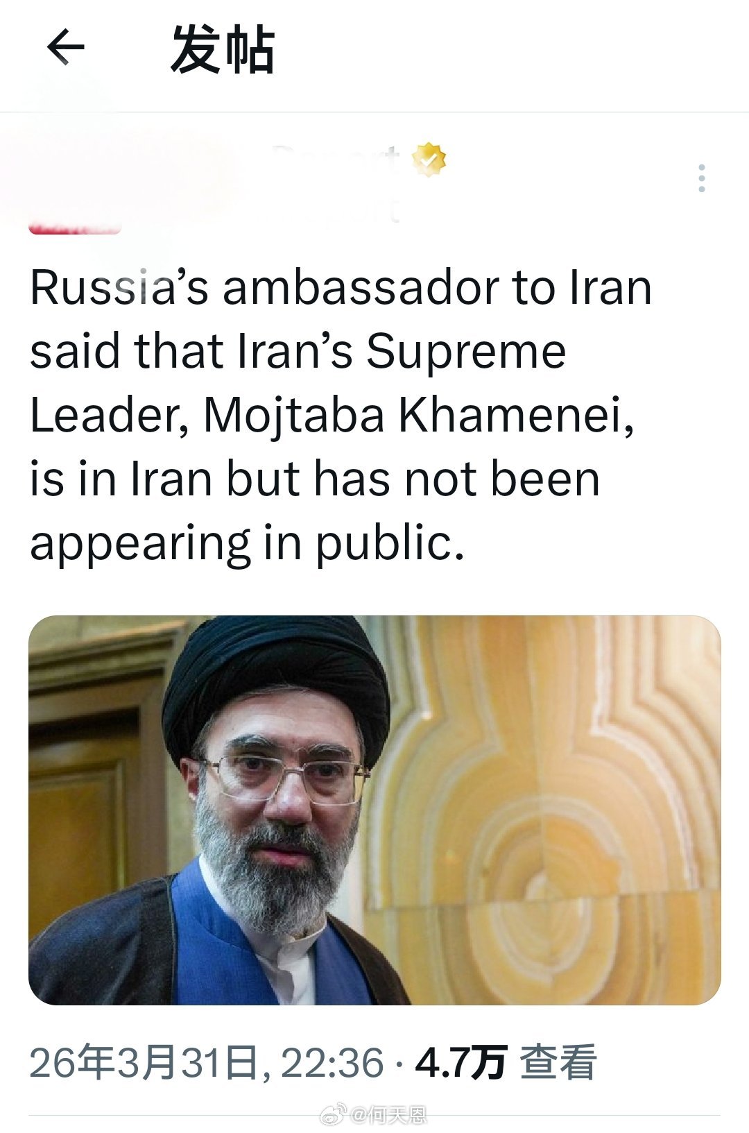 ➠俄大使发布该信息什么意思?他不知新任最高领袖仍然是以色列的重点目标吗?