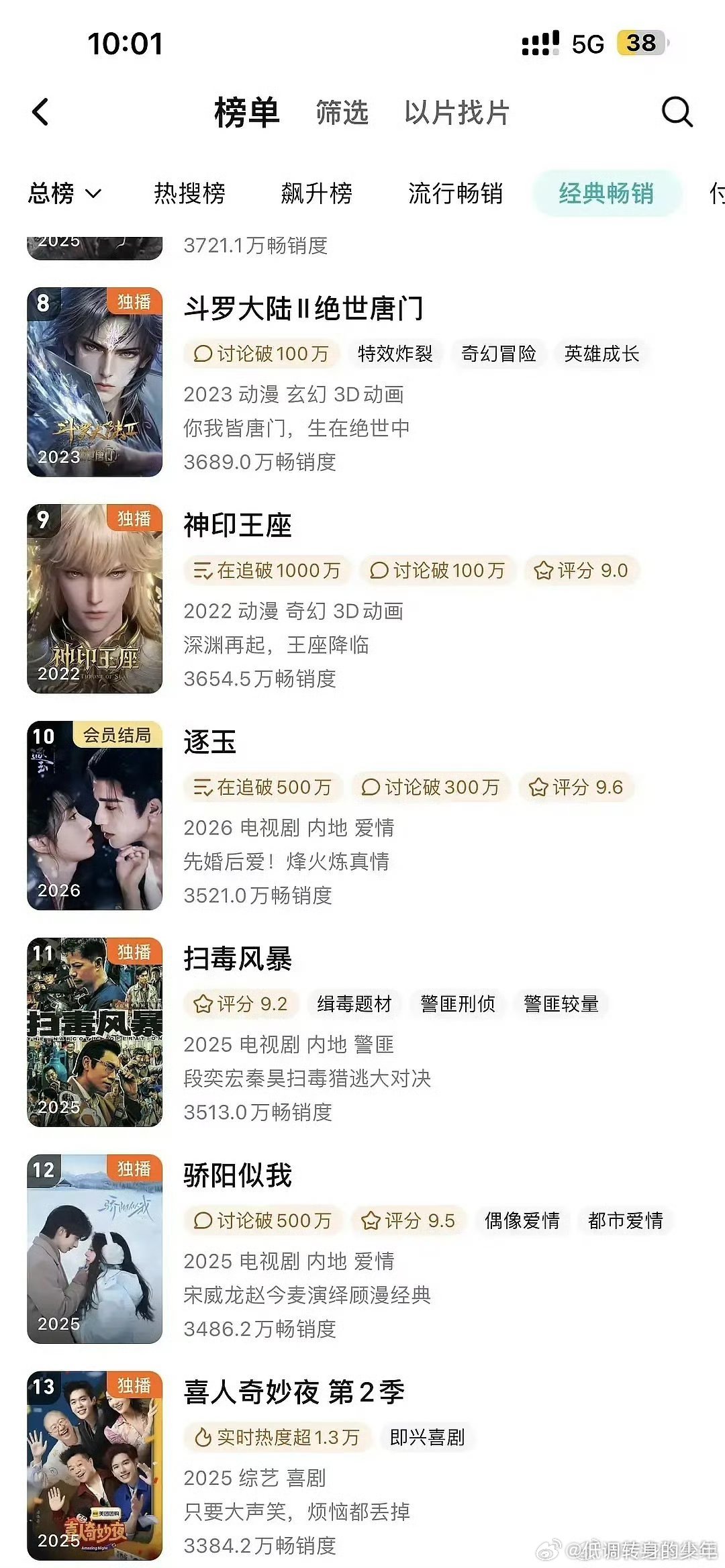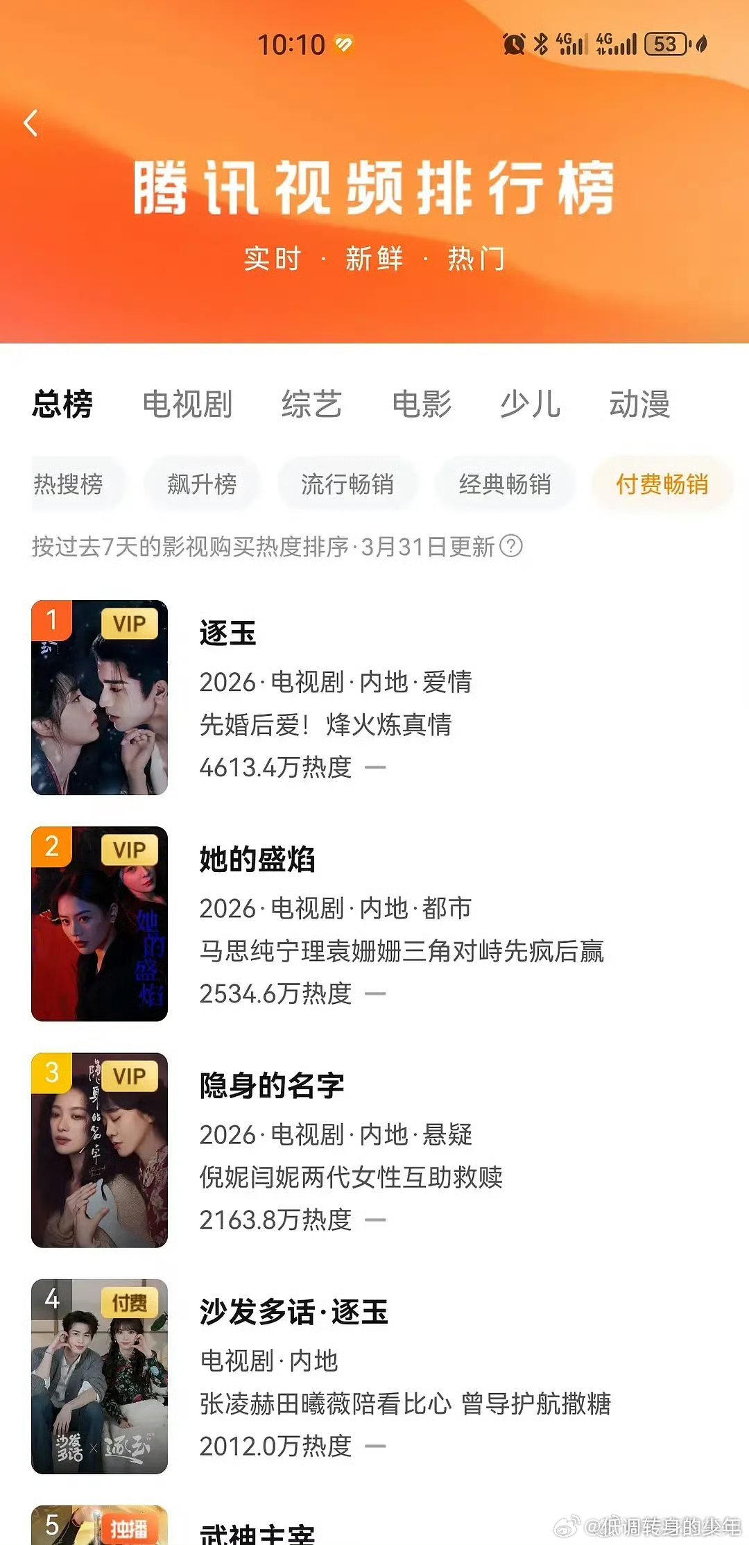 逐玉v完结就进拉新年榜前十!网飞非英语榜第三周升至第五!张凌赫逐玉 逐玉大结局的
