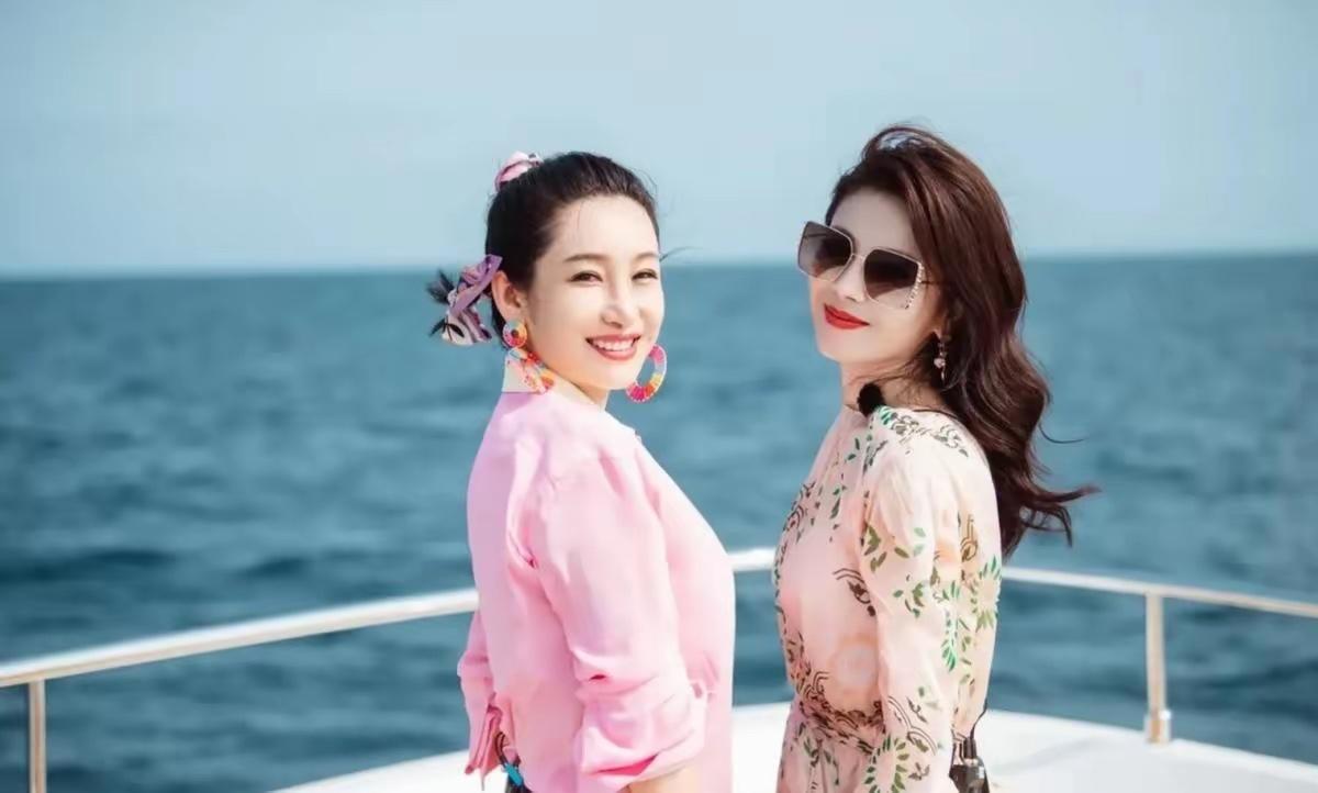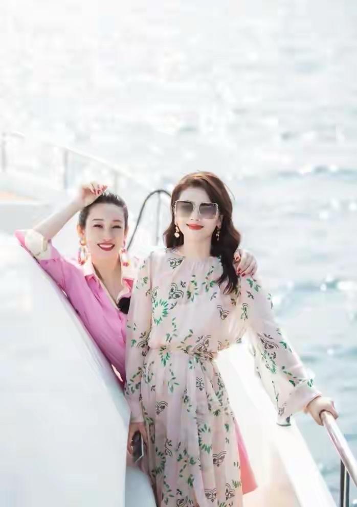 坐在游艇船舷的秦海璐,靠着一身浅粉色oversize衬衫裙成了视觉焦点,宽松的衬衫版型顺着身形垂落,刚好盖过大腿中部,袖口随意挽到小臂,领口解开两颗纽扣,保留了衬衫的利落感,又添了几分度假的慵懒。她的搭配细节也很多,彩色大圈耳环提亮了面部,中和了粉色的甜腻,让整体造型多了几分灵动,头发利落盘起,露出清晰的肩颈线条,衬得整个人挺拔又精神。 依偎在旁的刘涛,则选择了浅粉底植物印花长裙,与秦海璐的纯色连衣裙搭配形成呼应,又用细节拉开了风格差距,低饱和度的底色让碎花不至于杂乱,清新的绿叶与淡粉花朵图案,刚好和碧海蓝天的背景融为一体,自带文艺滤镜。宽松的灯笼袖与及踝裙摆,顺着海风轻轻摆动,氛围感绝了。
