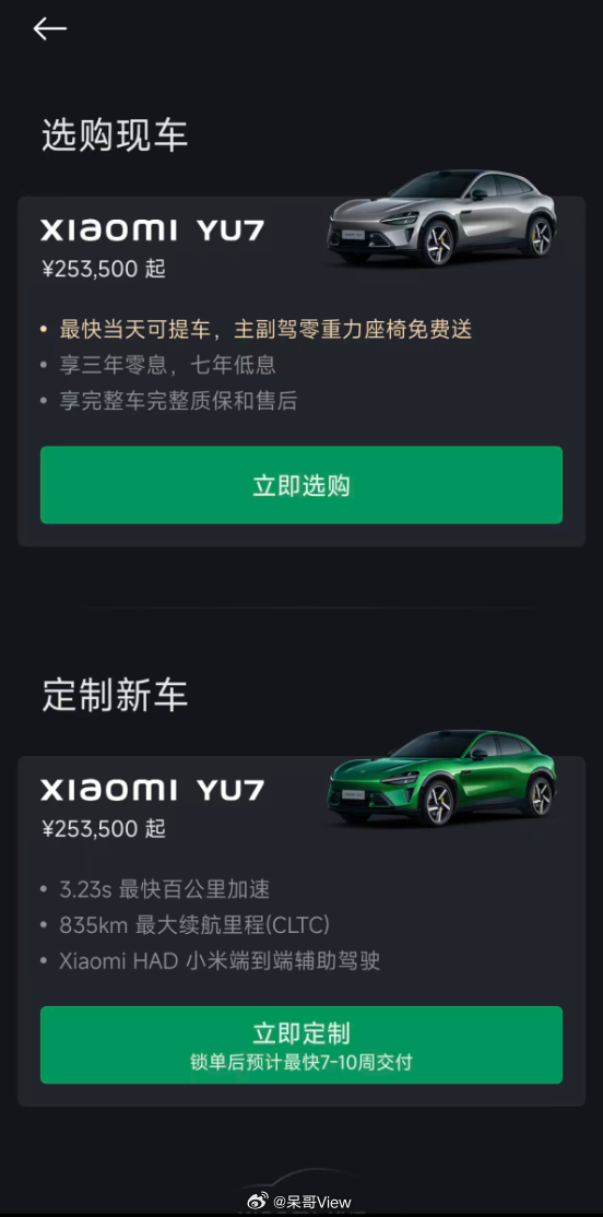 YU7其实订单还是厚,现在订还得等7-10周,隔壁Model Y已经缩到2到4周了,谁更热门还是一目了然。