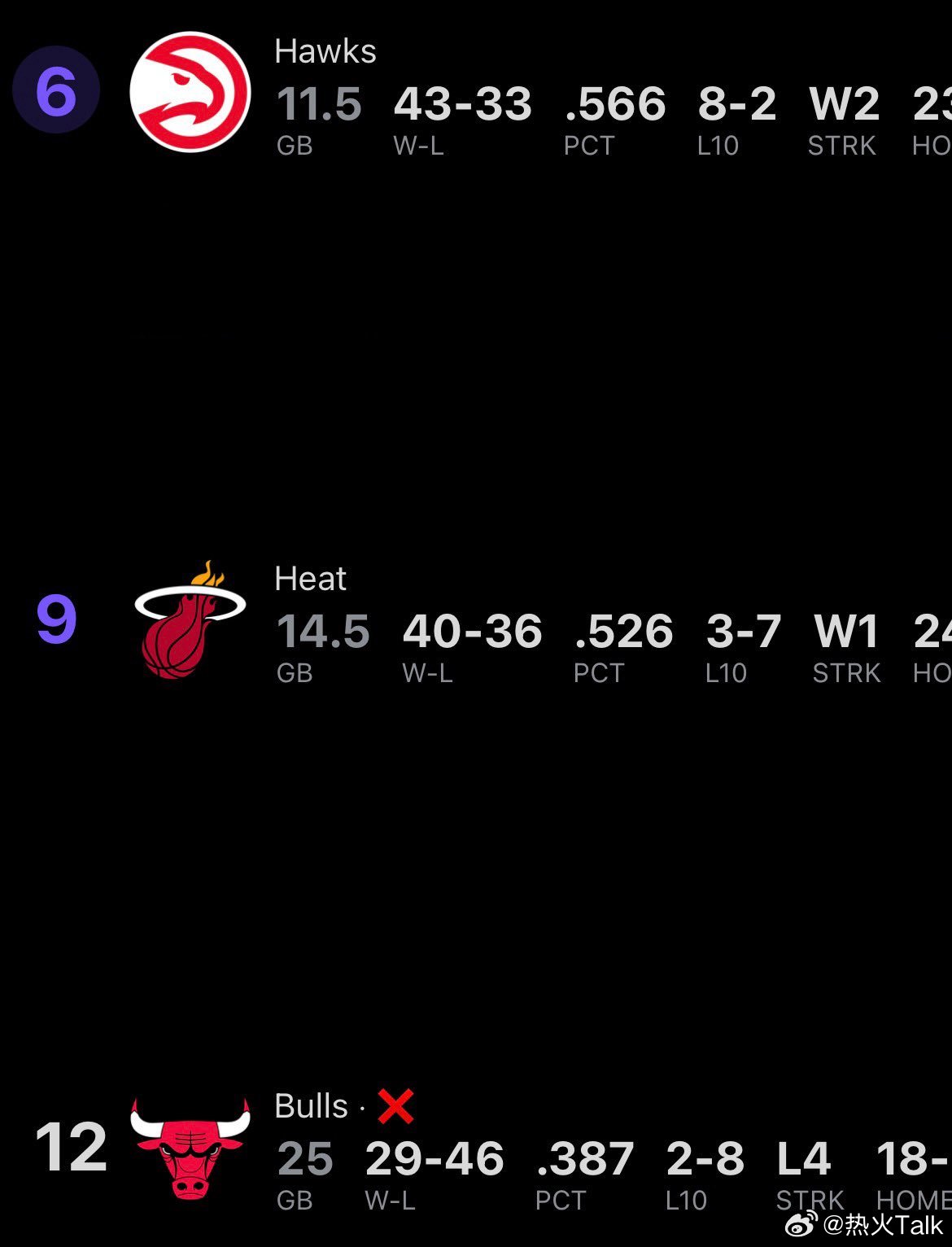 附加赛四兄弟中,老鹰已经摆脱附加赛,公牛已经掉出附加赛,只有热火还在原地苦苦挣扎nba常规赛热火