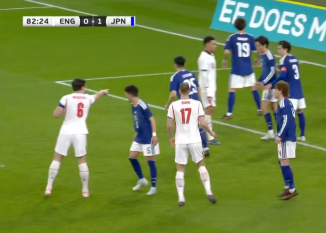 上半场日本球员后场抢断,快速反击,打入制胜一球。下半场英格兰大幅度反击,但是日本队全力退守,但是依旧,从从容容,游刃有余。