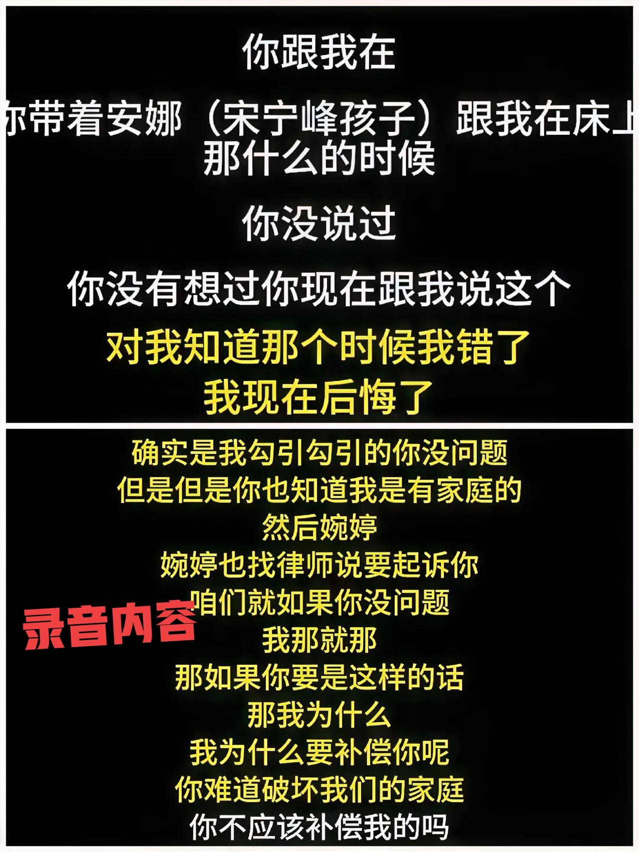 “确实是我勾引你”。 “威胁公开Q女士裸照”。 昨天出个不实锤的“瓜”,今天就来个捶死的“瓜”。 经纪公司抓住了艺人们多少的黑料啊,需要的时候就把这些黑料放出来。 昨天的“鞠婧祎被实名举报偷税漏税”。 今天的“演员宋宁峰被曝婚内出轨”。 不过这个瓜很实锤。 不仅有微信聊天记录、电话录音。 甚至有宋宁峰现任妻子张婉婷向Q女士发送的威胁短信:扬言公开其裸照。 裸照都有,玩的花呀。 全员无赢家:宋宁峰自私虚伪,现任妻子张婉婷极端涉嫌违法,Q女士知三当三。 看来也不能完全怪经纪公司,经纪公司只是在利益最大化的时机把黑料放出来而已。