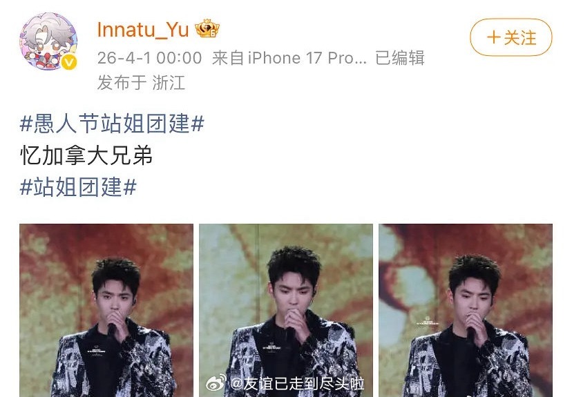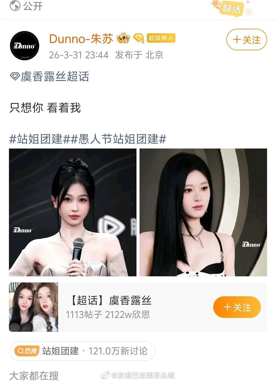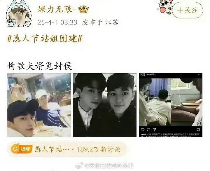 今年头铁的站姐,非常有愚人节 精神发虞书欣赵露思、发杨丞琳单依纯、发加拿大人和鹿晗、发博君一肖cp粉、发陈牧驰和吴楚一