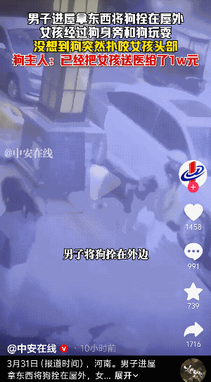 “太大意啦!”河南新乡,一男子将宠物狗拴在屋外,一小女孩经过时与宠物狗互动玩耍,没想到,宠物狗突然扑咬她的头部…… 3月30日,一男子进屋里头拿东西,他没有想那么多,就将自己的宠物狗拴在外面,就在此时,一小女孩经过时,可能觉得这狗比较可爱好看,就上前去摸狗的头,和狗玩起来,。 也不知道怎么的,这狗突然就性情大变,猛扑到小女孩的头部,撕咬起来。幸好小女孩的家属也在,她看到后,立马去拉开这狗,随后,送孩子就医。 狗的主人称,已经拿了1万元给女孩救治,女孩后续什么情况还不清楚… 狗的主人的朋友说:狗就在哪里拴着,人家小孩路过,她就去摸了,我们也不知道,如里面拿东西了,谁知道她一摸就咬了,给她放了1万块钱,先让她看着,到时候再说。 从视频上看,狗虽然是拴住,但是这个地方应该是公共区域的,而且这只狗是大型的狗,这狗主人也是大意了,这么大的狗出门在外,是不是应该也要带嘴套呢! 而反观小女孩,其实家长应该要教育孩子的呢?多可怕呀,不是自己家的,千万不要碰,去逗它。 从这个事情,我们一定要知道,养狗的,尤其是大型狗的,一定要多注意些才是,尤其是这些公共场合,不要觉得自己能了解自己家的狗,觉得狗不会咬人,等到伤人了,就后悔了! 还有就是家长一定也要给小朋友说,一定要远离这些大型的狗,哪怕是小型狗也是一样,不要觉得它可爱,好玩,就可以跟着它玩。毕竟它都没有认识你,气味都跟主人都不一样。你怎么知道它会不会突然咬人。有时候有些狗连主人都咬的! 网友说:狗是拴着了,但是那是公共场合,你得看着,那么大的狗,哪怕不是小女孩去摸它,也怕它突然扑向路人呀! 还有网友说:狗虽然是人类的朋友,但是也要分情况的,不是所有的狗都那么温顺的。 另外还有网友提醒:一定要给孩子说,猫狗虽然可爱,但是也有情绪不稳定的时候,也是会咬人的,所以,哪怕它很好看,也一定不要去逗它玩,更不要靠近它,尤其是外面不认识的猫狗! 看着视频,都觉得怕,那么大的一只狗扑上去咬头部,这多痛呀。真心希望大家在外面,一定不要去摸不认识的猫狗呀! 这件事情,也告诉我们,不管是养狗狗的,还是家里有小朋友的,真的要注意安全的! 狗狗 猫狗 狗 信息来源:中安在线