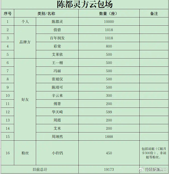 陈都灵月鳞绮纪云包场统计,嘟的好朋友真的好多,品牌方也包了好多,品牌妈妈们太宠嘟嘟了