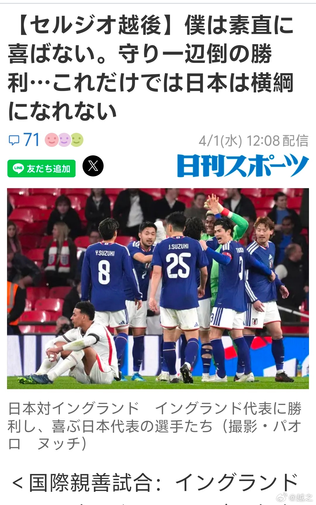 日本这个著名球评人塞尔吉奥越后还说,日本队一直防守,就防守是拿不了横纲的。唉,这种战术,森保一的这种战术和日本球员的极致执行能力,都已经干倒三个巨人了。昨天还有人和我说,在美加墨看好英格兰夺冠呢。