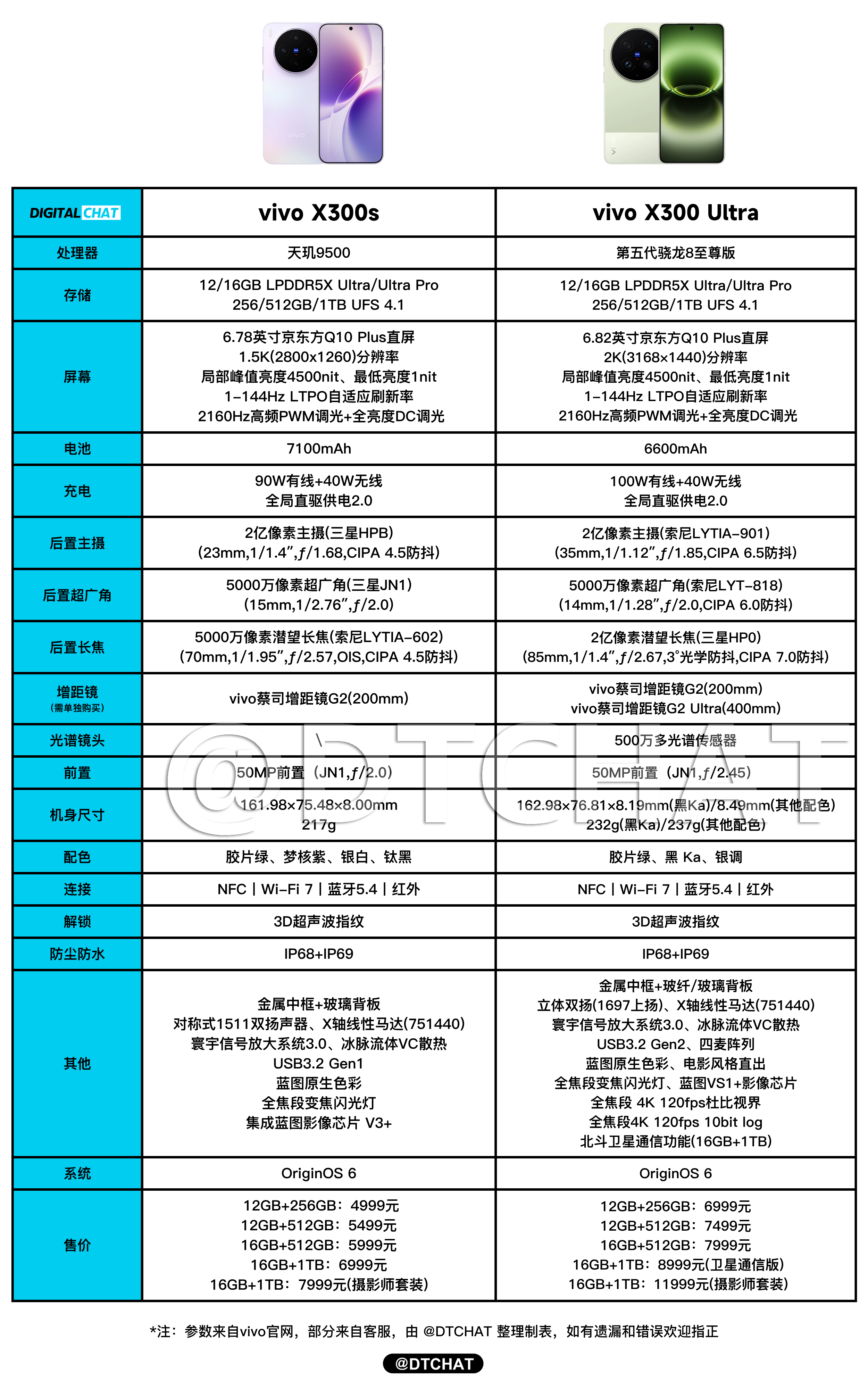 一图看懂vivo X300s和vivo X300 Ultra参数配置和价格,两款机器的配置都很顶。