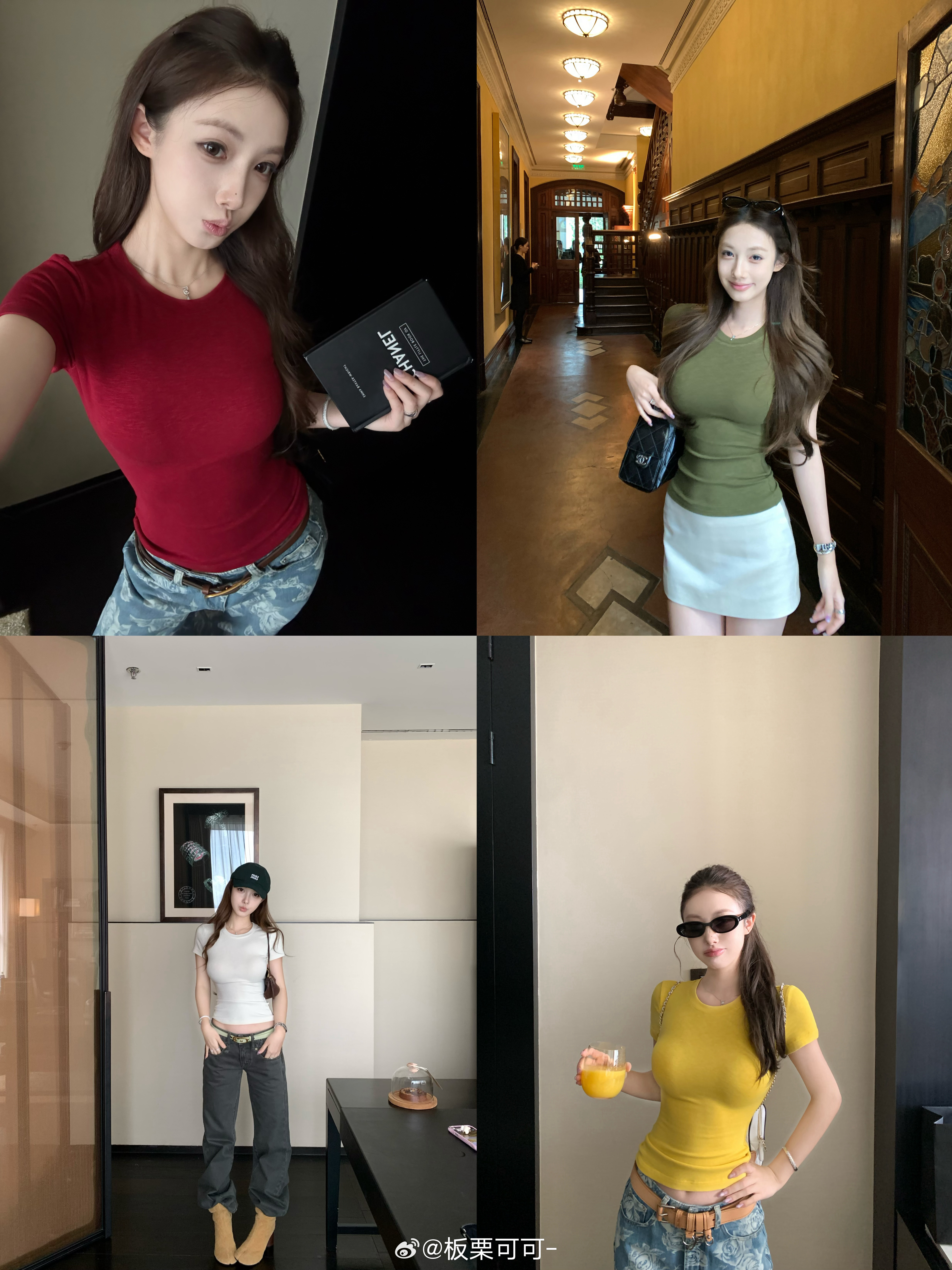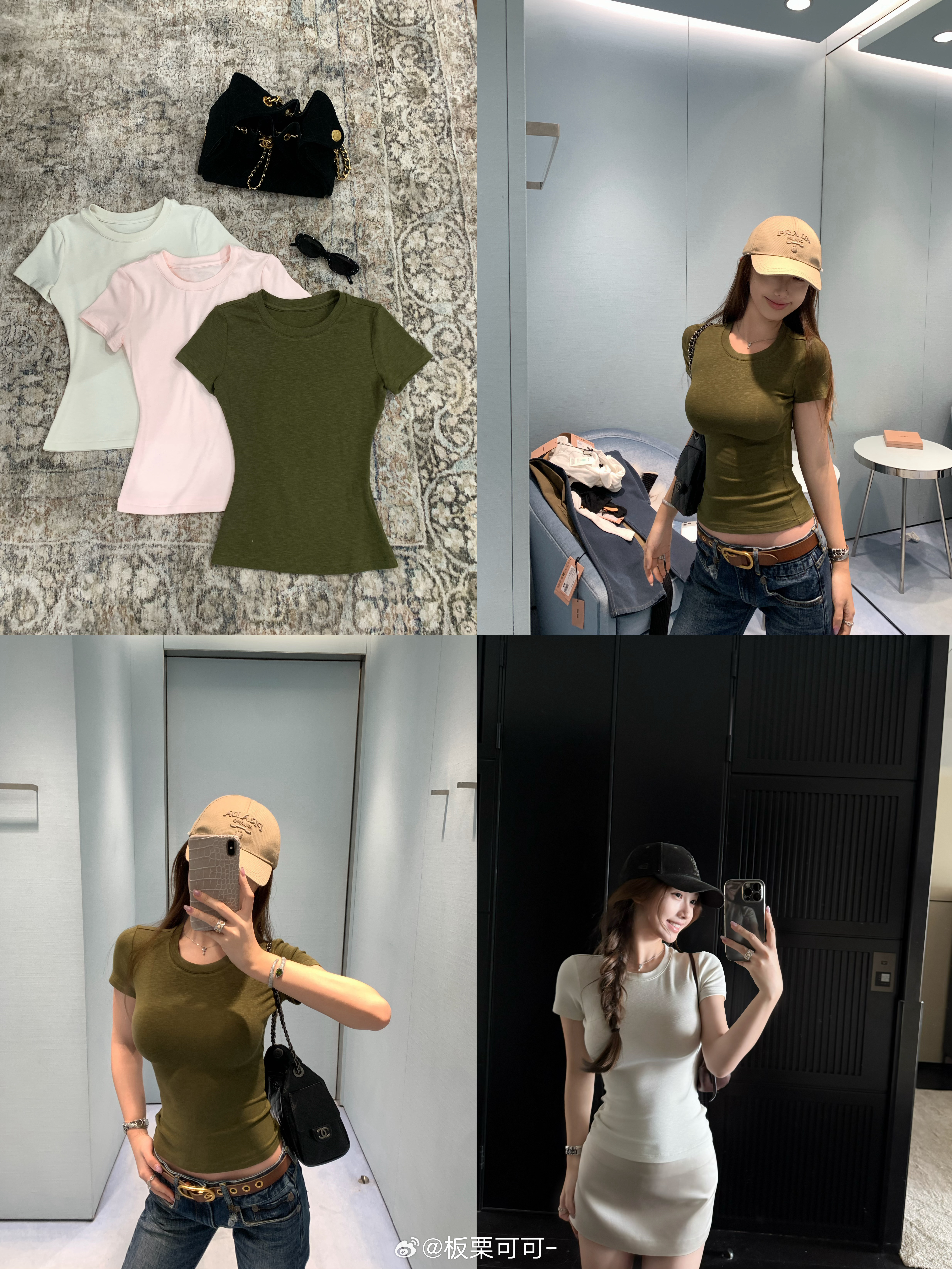 板栗可可Bankelili4/7/20:00👍🏻🍎揪2️⃣👭song同款!!本期主推的人手多件系列s*kims短袖!!用了很特别的’慕斯竹节’面料☁️像慕斯一样软糯的面料🧁贴身穿贼舒服!!不想脱下来的程度!又自带竹节的肌理感 给大家做了5个颜色🎨可以多色囤!!