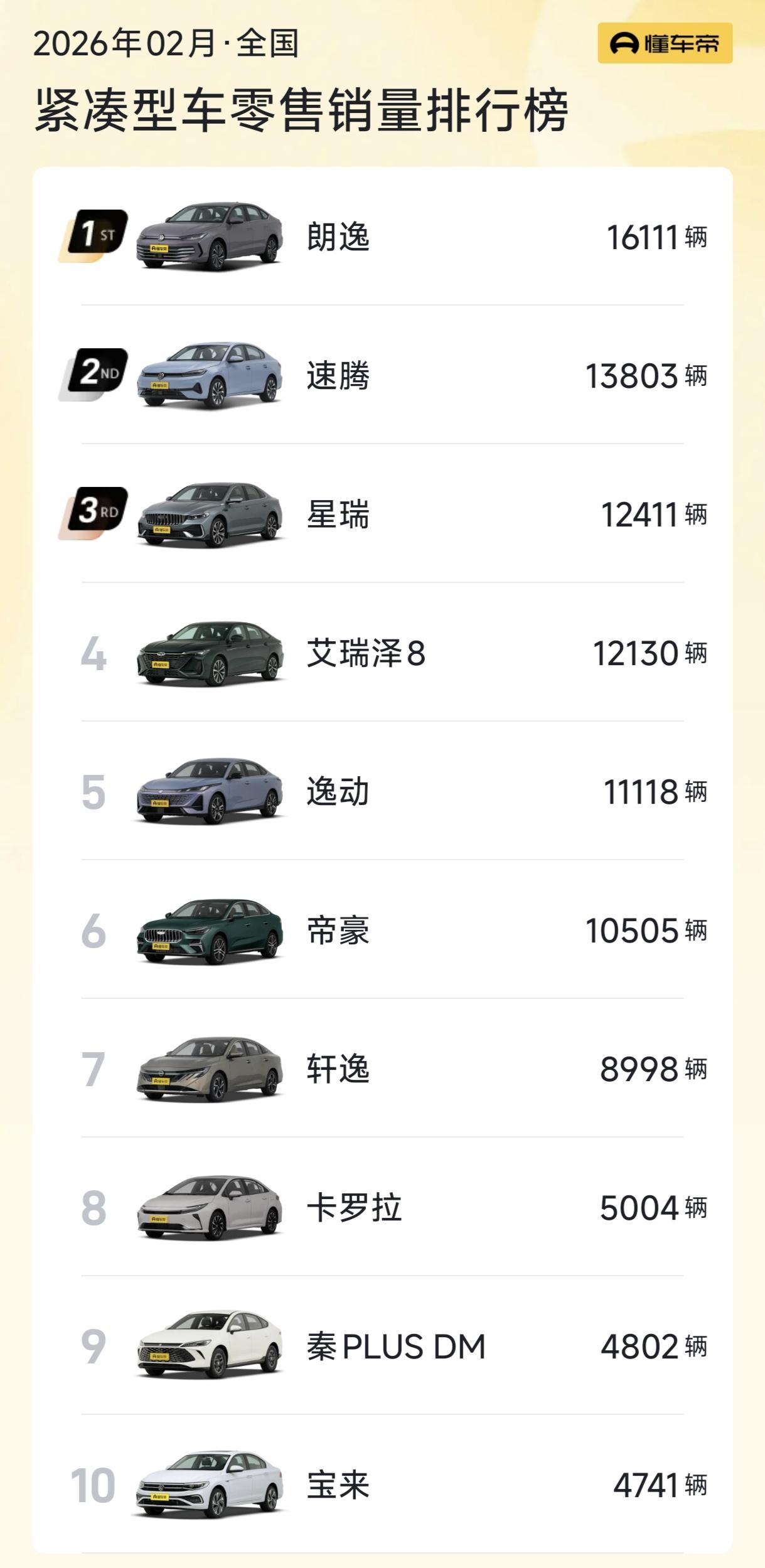 杀红眼了,自动挡7.98万,大众速腾S低价上市。 车身尺寸4702x1815x1484mm,轴距2688mm,1.5L自吸+6AT变速箱,售价7.98万起,高配1.5T涡轮增压+7挡双离合,售价10.58万。 紧凑级轿车的销冠,之前一直被日产轩逸霸占着,最近几个月,轩逸已经露出疲态,销量有所下滑。 这是大众速腾S的大好机会,凭借大众品牌的号召力,用超高性价比去抢占市场,有望把轩逸拉下马,一举成为紧凑级轿车的冠军。 虽然国产新能源已全面崛起,但是紧凑级轿车的市场,还是被油车牢牢霸占着,2月份的销量榜前10名里面,仅有一款新能源车。 大众在国内,还是拥有庞大的基础用户,凭借大众金灿灿的车标,速腾S具备了大爆款的潜力。