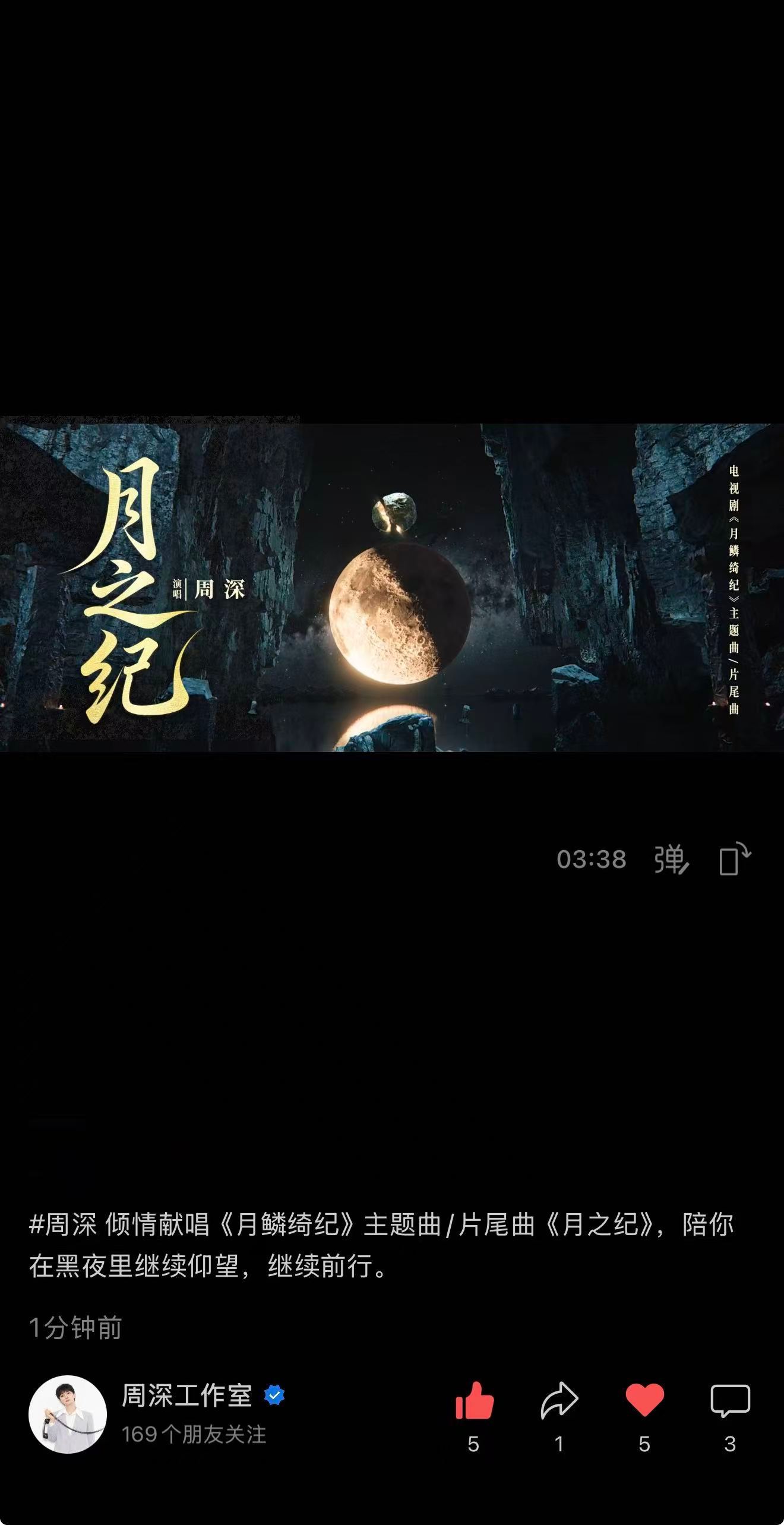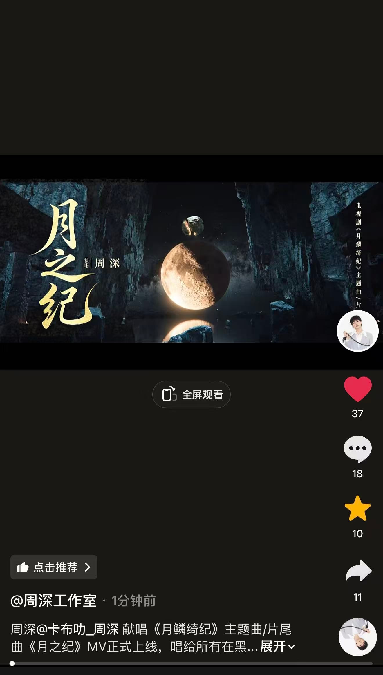 【周深工作室】抖🫘、vx视频和破站更新《月之纪》MV,米子们快来完整观看并多多三连互动