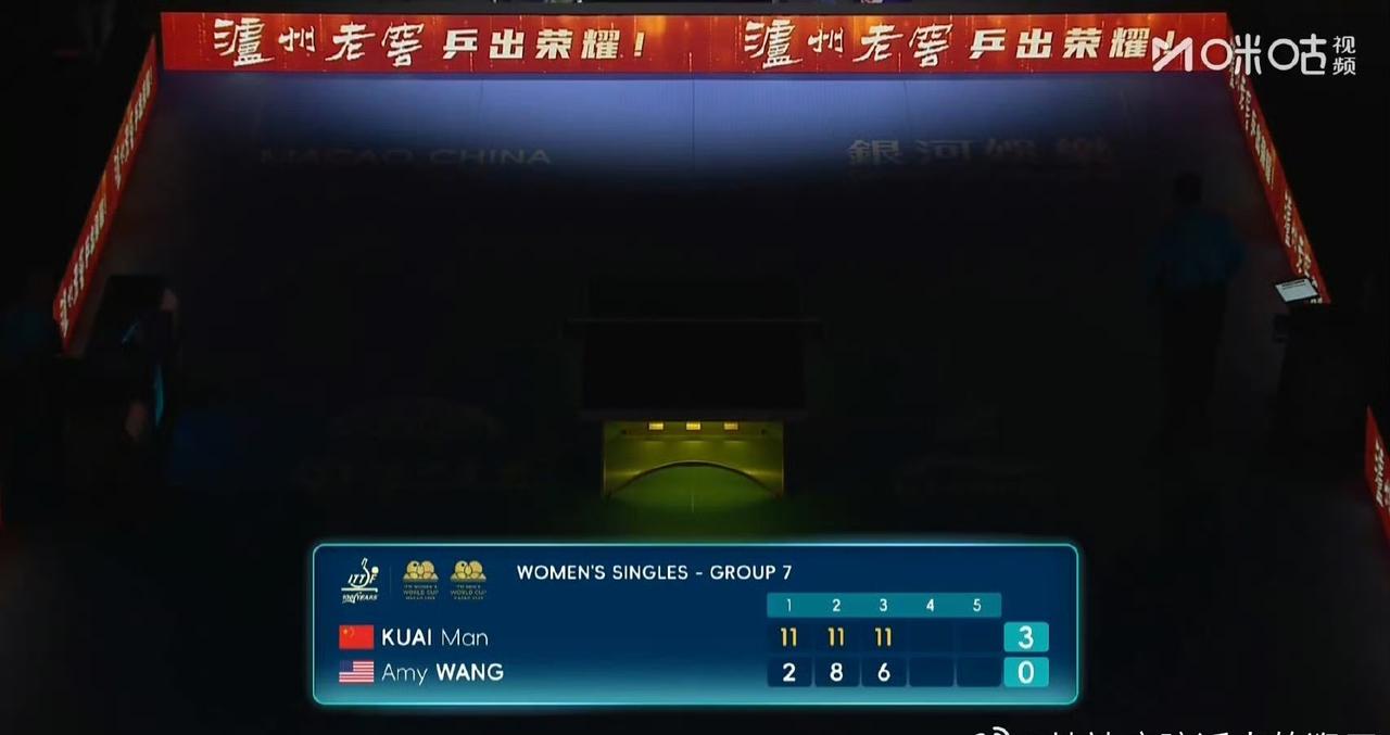 恭喜蒯曼[赞][笑哭]! 蒯曼🇨🇳轻松晋级第二阶段淘汰赛! 刚刚!蒯曼🇨🇳3-0轻松击败美国选手王艾米🇺🇸,至此,蒯曼在第一阶段小组赛上两战全胜,轻松晋级2026澳门国际乒联单打世界杯女单淘汰赛,进入女单十六强! 三局比分为蒯曼11-2,11-8,11-6。 国乒女队有望全部晋级第二阶段淘汰赛!