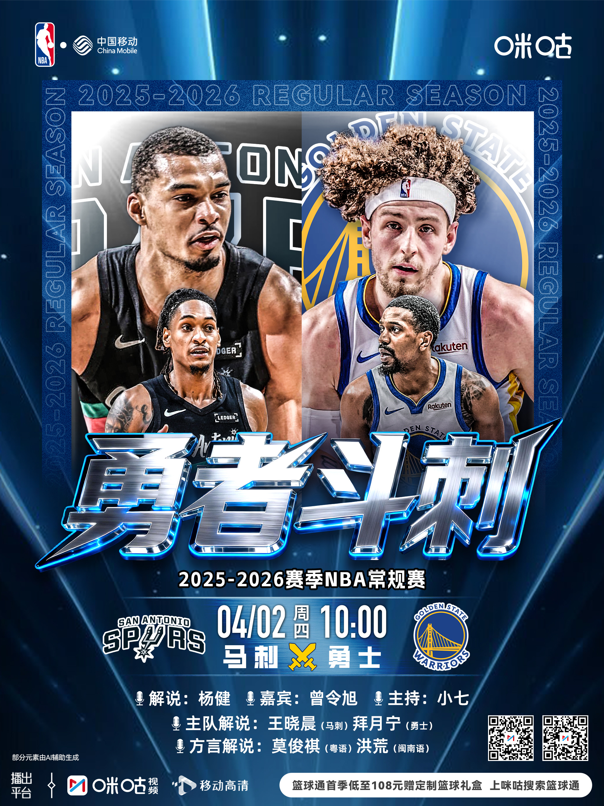 🏀25-26赛季NBA常规赛⏰4月2日 10:00 星期四🆚马刺vs勇士丨焦点对决📱#看NBA上咪咕#网页链接