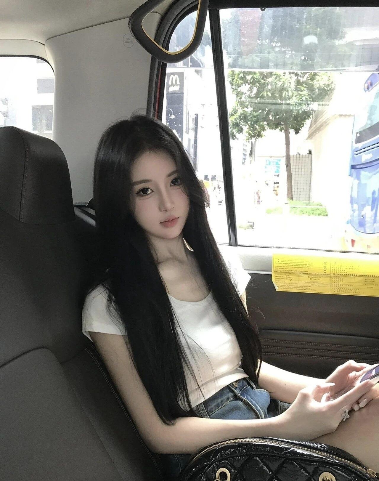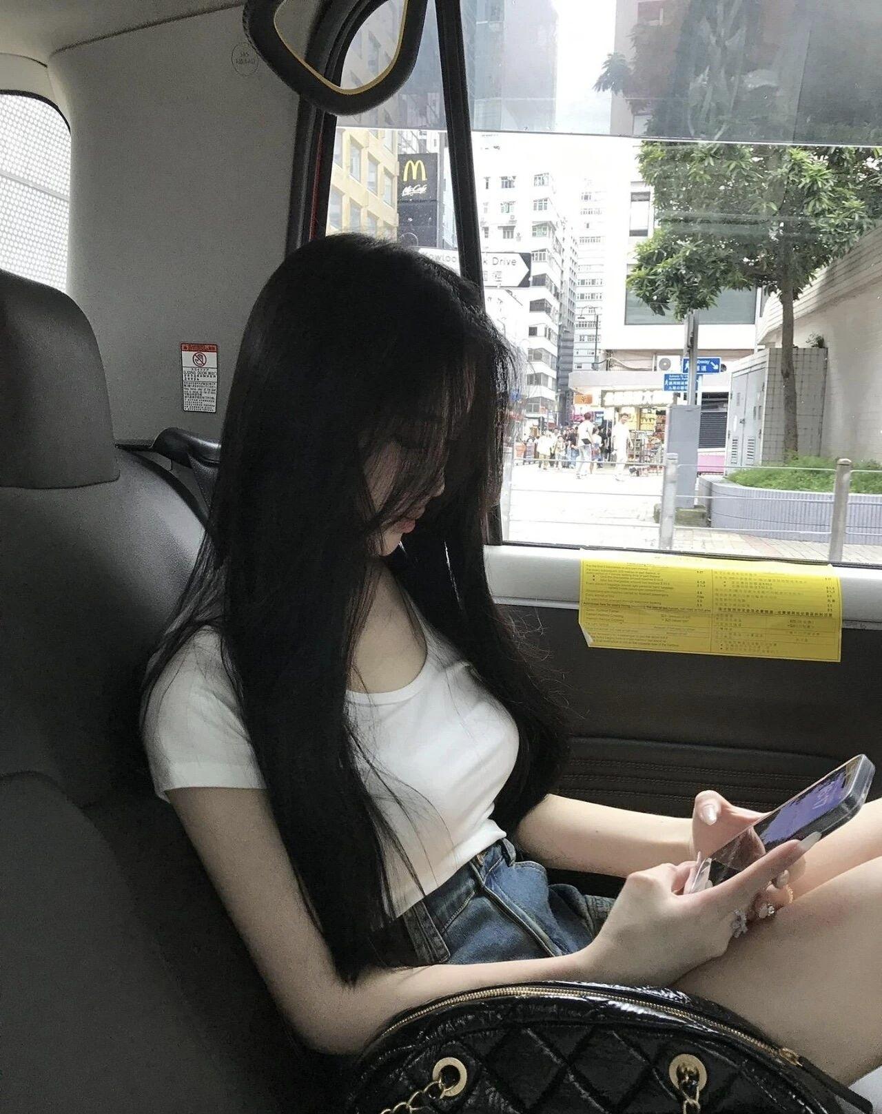 在车内自拍,黑长直发,清新自然,都市少女风