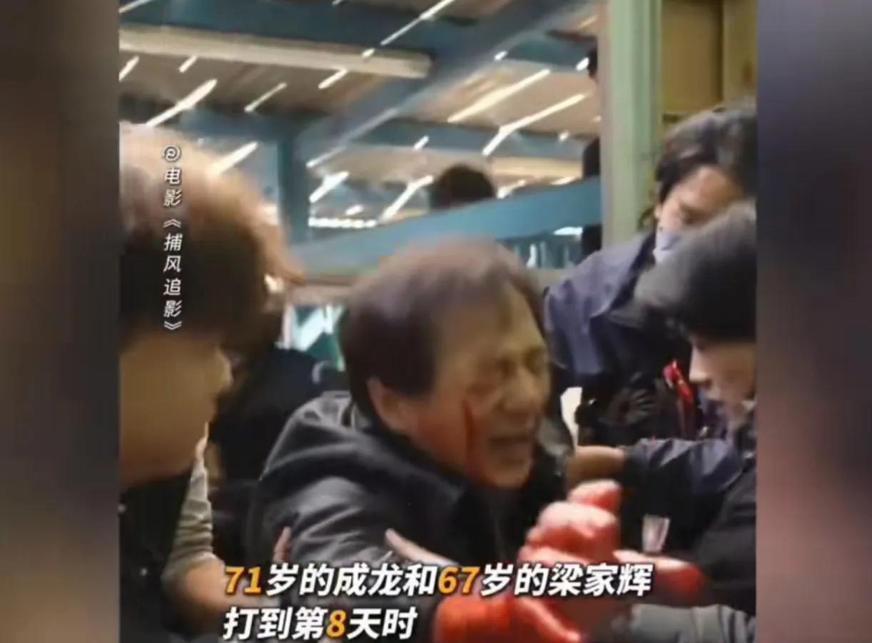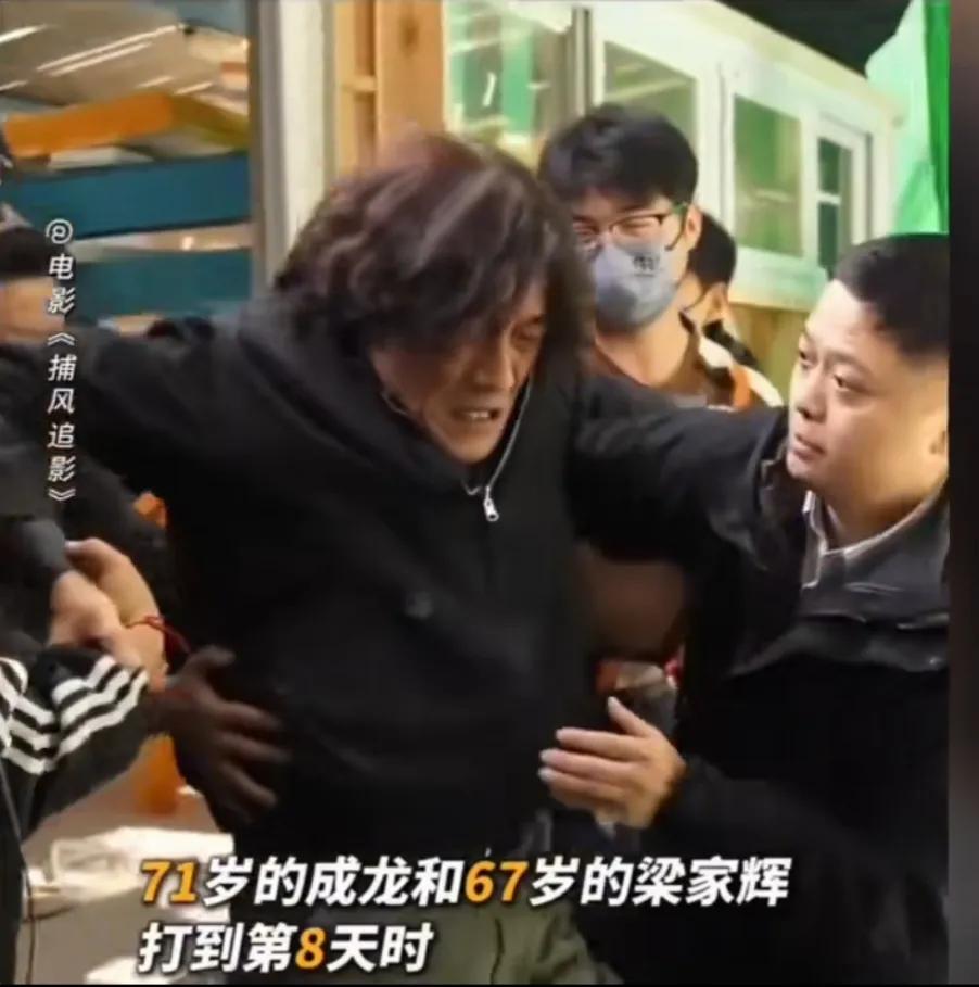 成龙71岁,梁家辉67岁,都是一把年纪的人了,还在拼命演打戏。 每次打完,俩人都没有力气站起来,需要工作人员扶着。 看着他们那痛苦的表情,也是太辛苦了,过后还仍然斗志昂扬。