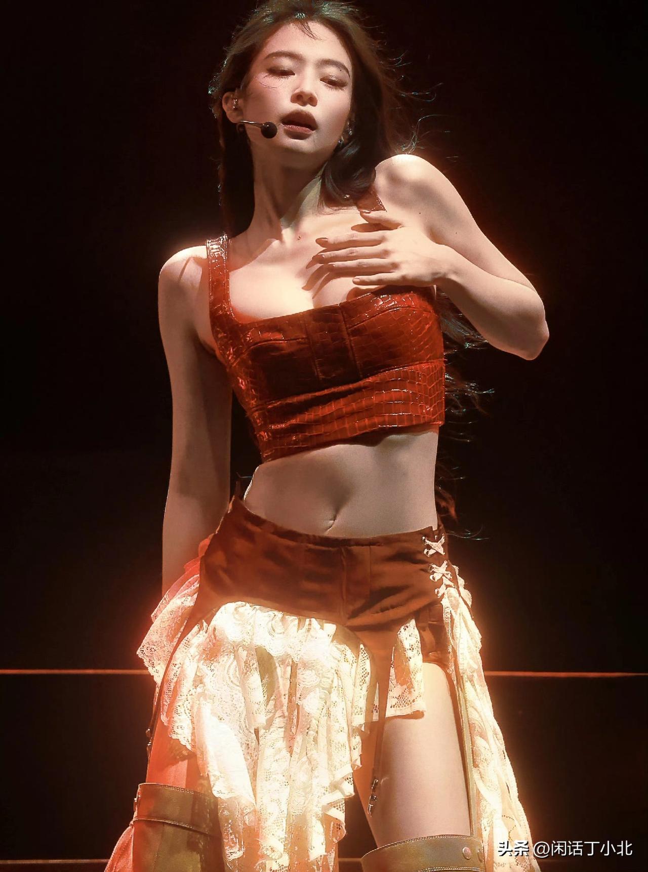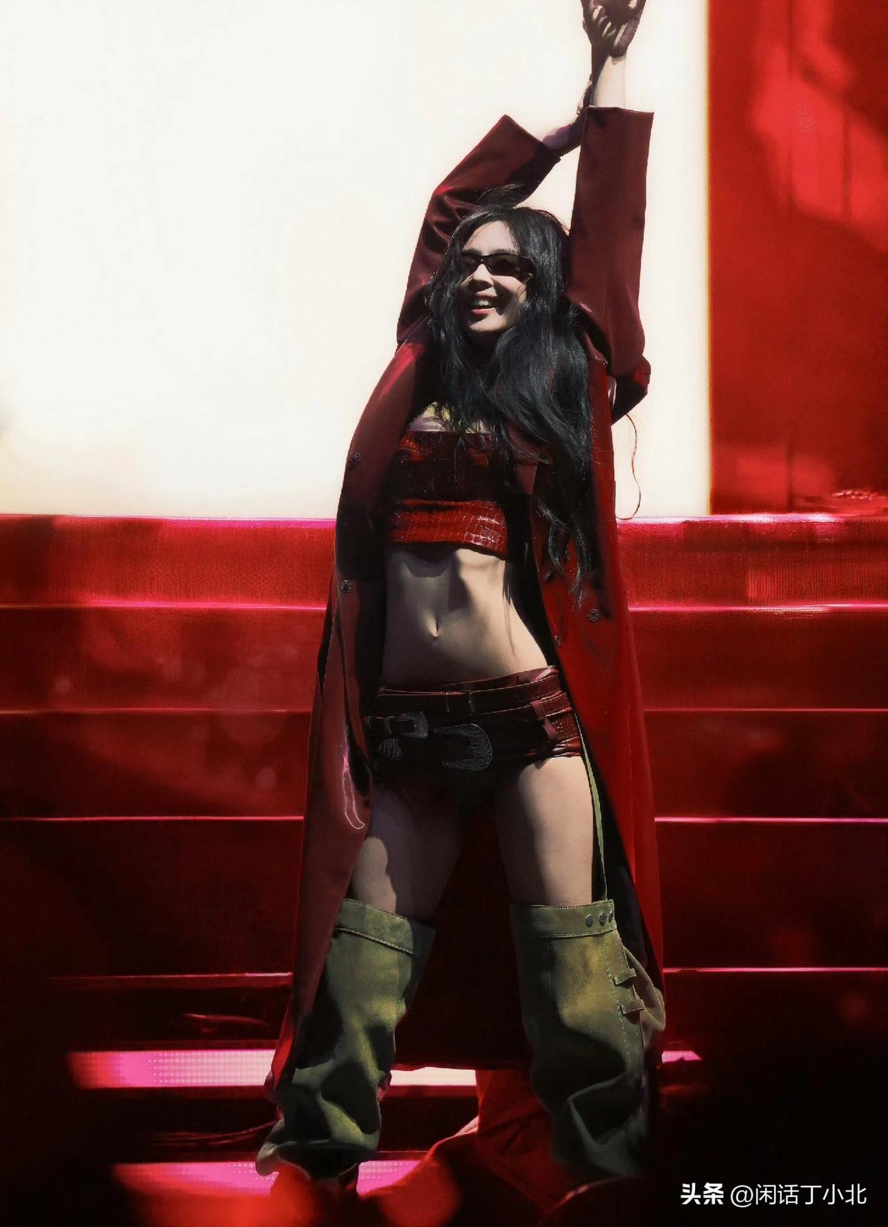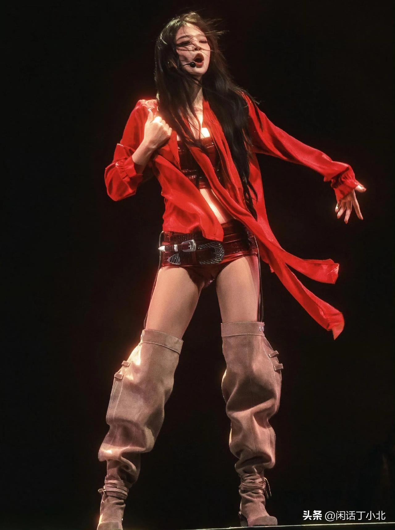 Jennie科切拉舞台神图引爆视觉革命 2026年4月1日,韩国女团ITZY成员李彩领的官方站姐突然发布一组Jennie科切拉音乐节舞台写真。 照片中,Blackpink成员Jennie在《Like Jennie》副歌段落甩发的动态被精准定格。 红色牛仔帽在暗调背景中形成视觉焦点,帽檐阴影恰好遮盖半张脸,发丝划出的弧线与舞台追光形成黄金分割。 网友惊呼:“每一帧都是电影海报”。