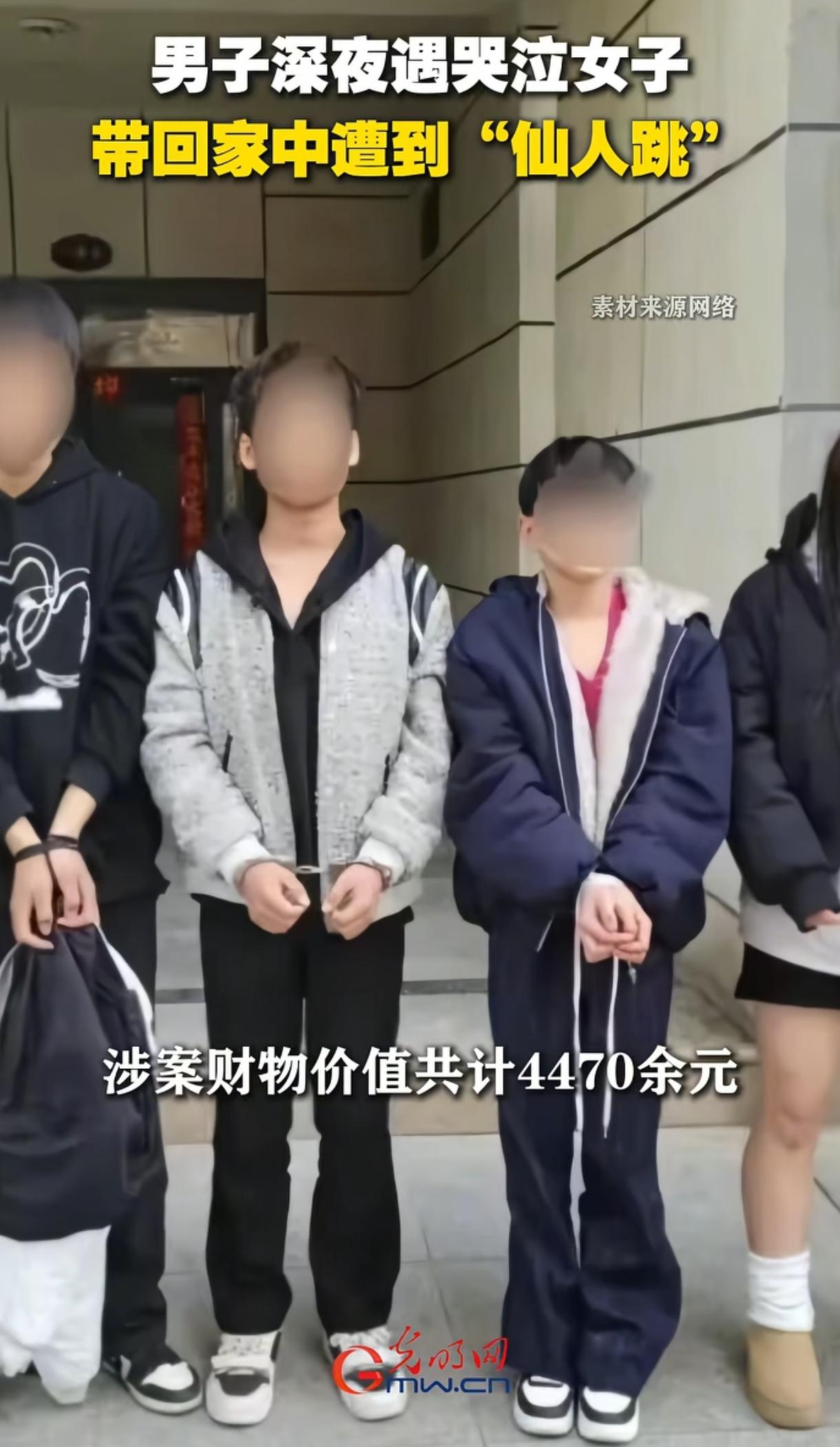 “警惕!” 甘肃,男子凌晨开车回家,发现一位年轻女子蹲在路边哭泣,无家可归,便动了恻隐之心与色心,将女子带回了出租屋,没想到,刚进屋不久,房门便被猛力踹开,4名彪形大汉持刀闯入...... 2026年3月11日凌晨,甘肃兰州七里河区街头,加班晚归的张先生开车回家时,发现一名年轻女子正蹲在路边低声哭泣,十分无助。 张先生一时动了恻隐之心,上前劝说道:“姑娘,天这么晚了,你一个女孩子为啥待在这里哭呢?太危险了,赶快回家吧......” 女子抬起泪眼,伤心地哭诉道:“我跟爸妈吵架,回不去了......身上没钱,手机没电......天太晚了,我又怕黑不敢呆在外面......” 之后泣不成声,梨花带雨,楚楚可怜。 很明显,女子意思是与家人闹矛盾,无家可归了,也没钱住店,但这么晚了又急需找一个地方落脚,给手机充电,等等。 男子心软了,他见女孩年纪轻轻,面容姣好,一时又动了别的心思,便提出先让女孩到自己出租屋去暂时充一下电,女孩起初不情愿,之后才“怯生生”上了男子的车。 其实,凌晨街头突然出现“一个路灯下哭泣的小姑娘”,男子就没有一丝丝怀疑吗?因为,高端的猎人往往以猎物的形式出现。 果然,女子刚进张先生的出租屋不久,房门突然被人猛力踹开,一下闯进4名持刀的彪形大汉。 原来,女子在路边哭泣时,她的几名同伙就在附近观察着,见男子上钩后,他们又暗中尾随着闯进了屋。 女子指着男子哭着大喊:“他强J我!” 四名大汉立刻持刀控制住了张先生,威胁道:“快拿钱出来,否则打残你,要不闹到你单位,让你身败名裂!” 张先生这才明白这不是“艳遇”,而是遭遇了“仙人跳”。但他只是一位普通外来打工族,经济并不宽裕,住房是租的,工资也低,根本没啥钱给他们。 为了保命,张先生只得放弃反抗。 最终五人在他家里翻箱倒柜搜了个遍,没找到什么现金,就强行搜走了价值4470元的20条香烟,之后迅速逃离。 然而,天网恢恢,疏而不漏。 男子被抢劫后立即报警,兰州七里河分局迅速启动调查,凭监控、大数据等迅速锁定了这个“一女六男”的七人团伙。 这一团伙分工明确,年轻女子主诱,其余男子分别望风、埋伏、抢劫、接应等,案发后3人逃酒泉,4人藏兰州。然而,仅仅12小时警方就将他们一网打尽,并追回全部赃物归还给了男子,可谓雷霆手段! 这伙人团伙作案、有前科、有预谋、穷凶极恶,且持刀入室抢劫,情节十分严重,量刑远超普通敲诈罪,等待他们的大概率是10年以上刑期甚至更重的惩罚! 对此,网友们热议不止。有网友说:“这伙人就是拿年轻女子来色YOU的,没想到男子真的中招了,但凡是个哭泣的老太太,男子大概一点不带搭理的,可见“色字头上一把刀”啊。” 也有网友戏谑地说:“你说有出息吧,他敢抢劫,你说没出息吧,就抢几条黑兰州,偷几条进去踩缝纫机几个月,持刀入室抢劫至少十年及以上刑期,这也太不会算了。” 不得不说,男子还是太大意了,面对深夜陌生女子街头示弱、求留宿的情况,99%是传统“仙人跳”,你认为是在做好事,甚至是一场“桃色艳遇”,殊不知极可能是一场“夺命陷阱”。 此案例也给大家以深刻的警醒: 一:千万不要被表面现象蒙蔽双眼,绝不带陌生异性回独居住所,若遇本文这种情况,直接选择报警,送派出所,一定不要私自带走。 二:尤其对于佯装可怜、博取同情并诱导前往住地的“仙人跳”套路诱饵,大家一定要警惕,千万不要心软,以保障生命与财产安全。 (来源:闪电新闻、浪涨新闻等)