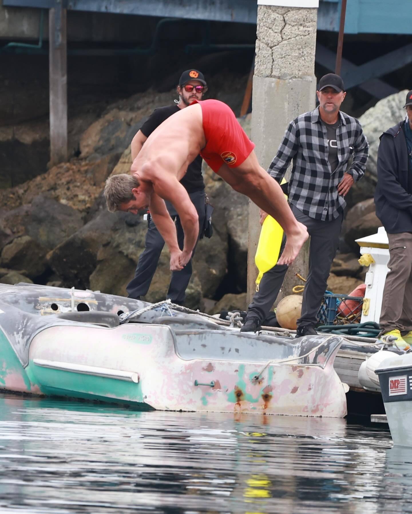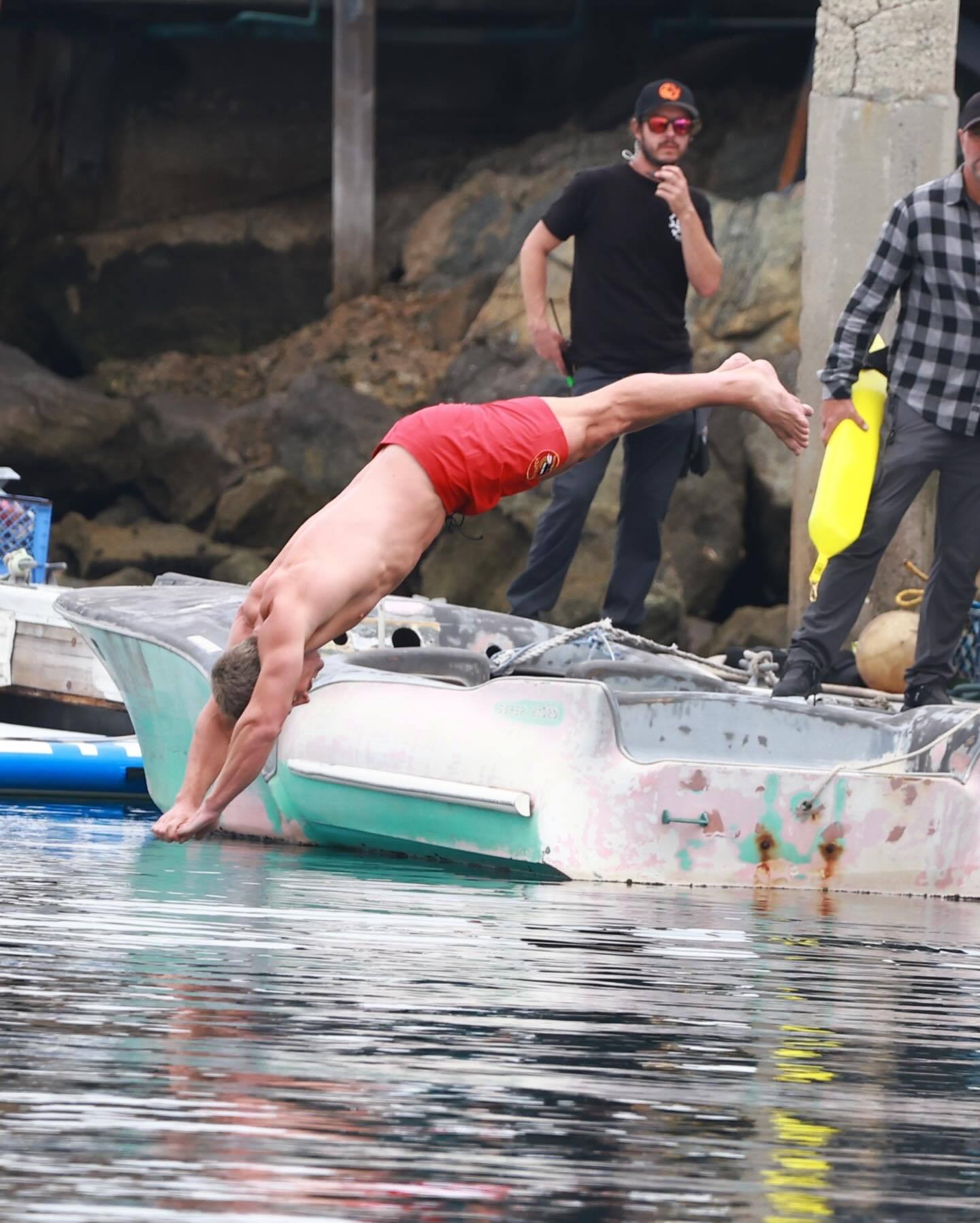 在这场戏里,Stephen Amell和其他主演跳入海中,救起了一名溺水女孩,Stephen跳水姿势标准,真是美人跳水,如花沉碧,玉体入海,波心荡月。