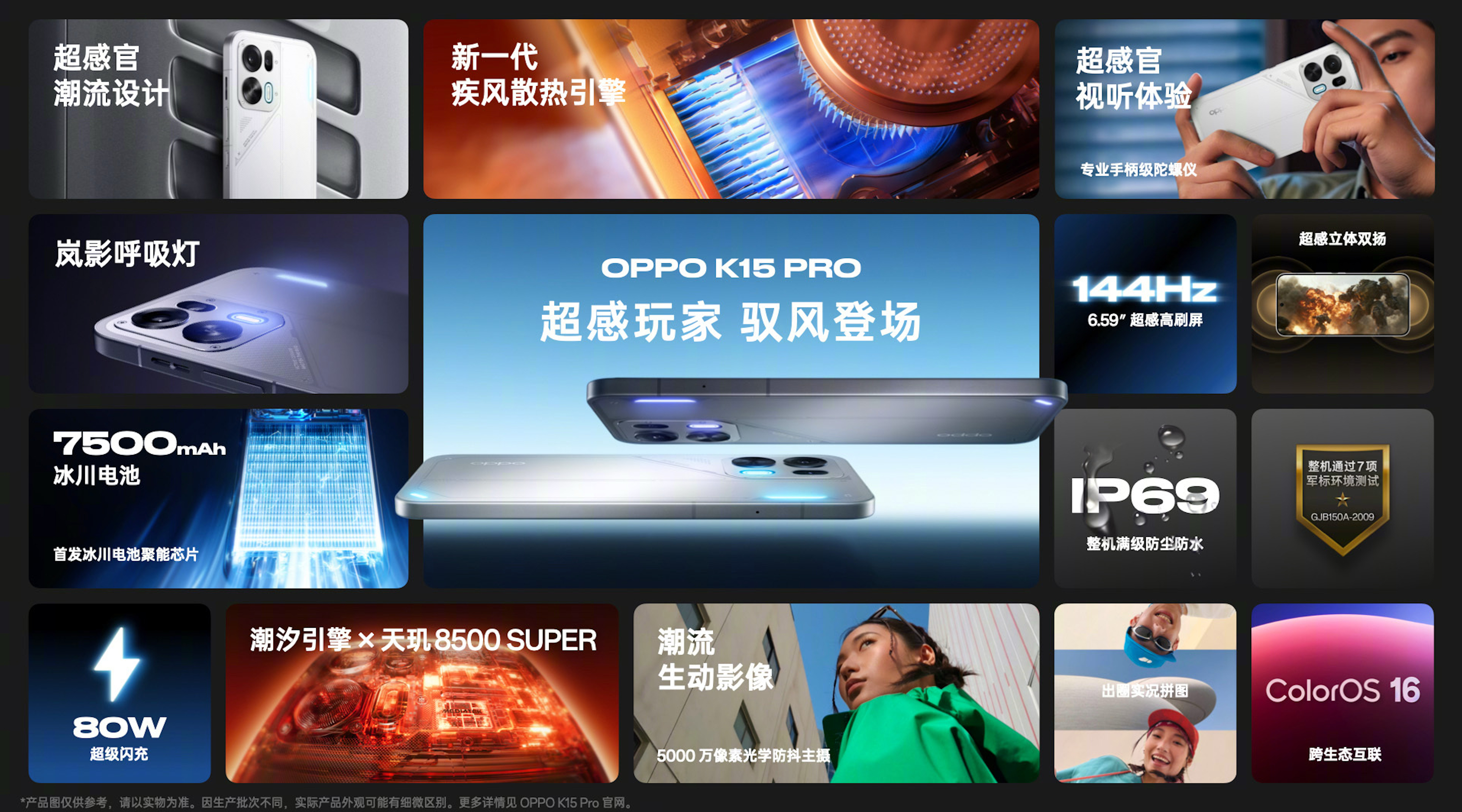 OPPO的K15 Pro系列登场,Pro和Pro+两款。Pro是天玑8500 SUPER处理器,144Hz刷新率屏幕,7500mAh电池,呼吸灯、IP69防水等配置......Pro+是天玑9500s处理器,165Hz刷新率屏幕,8000mAh电池;然后还有超感临场双扬、灵犀按键......