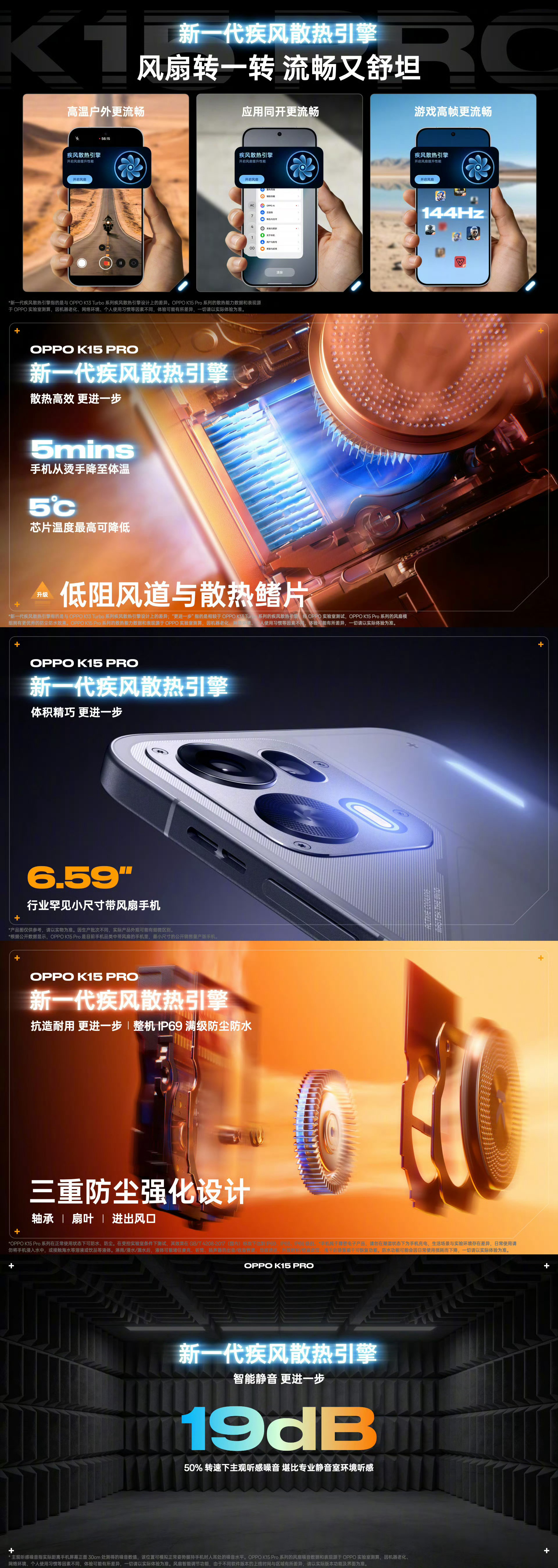 OPPO K15 Pro:天玑 8500 SUPER 处理器,新一代疾风散热引擎,7500mAh+80W,立体双扬,IP69 防尘防水,风扇 IPX9 防水,6.59 英寸 144Hz 高刷屏,5000 万主摄、800 万超广角,1600 万前置,双频 GPS、三频北斗、OPPO 山海通信;