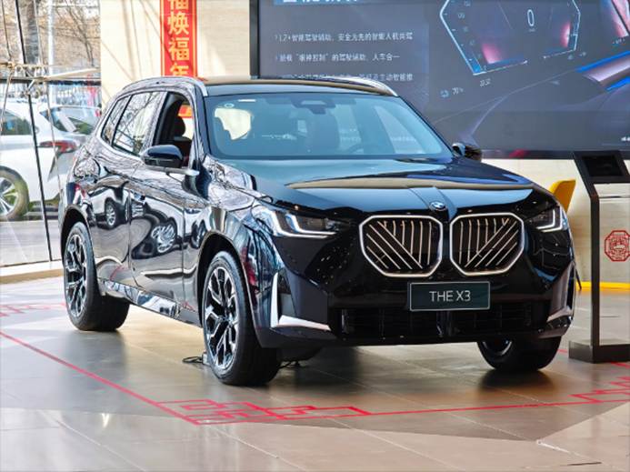 大家好,这个车我其实答应大家挺久了,然后一直没凑上时间,今天正好到店,新宝马X3正式上市,价格也下来了,配置还加了一大截,这个事儿我觉得必须聊一聊。因为我之前那期老款X3底下评论,全是“贵”“配置抠”,我都记着呢。 先说外观,我现在就站在车头前面。新款这个前脸,说实话比老款精神多了,双肾没再继续瞎放大,这点我给好评。曜夜套装现在直接全系标配,黑化元素到位,轮毂我看了一眼,19寸起步,中高配20、21寸,这个比例就是顺眼。侧面线条还是典型宝马,一个紧绷感,不臃肿。尾部四炮筒造型在SUV上我个人是比较吃这一套的,比某些新能源那种一刀切尾巴,好了不知道多少。