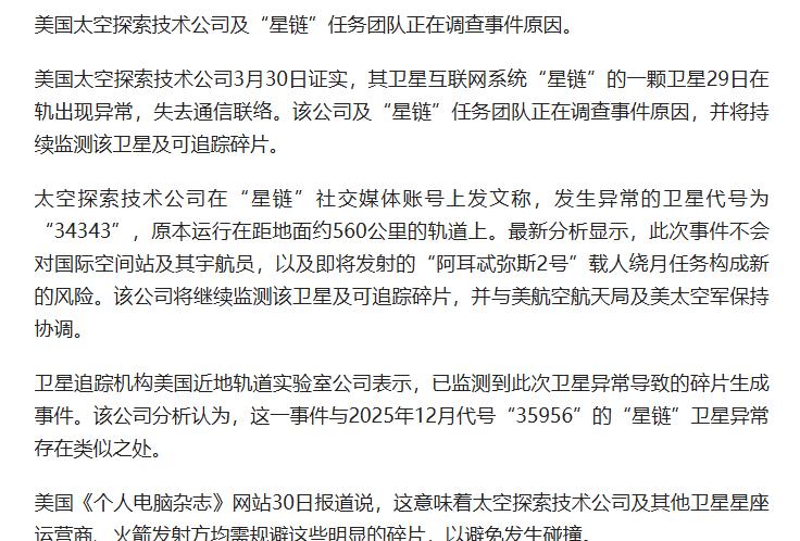 一颗星链卫星失联,有一颗就会有无数颗。 那么问题来了,究竟是一次太空碰撞的事故,还是在战争中的一个故事呢? 毕竟,星链主要是一个军事用途的项目,民用都只是搂草打兔子而已。 和当年GPS一样。 星链对人类不是一件什么好事,在太空中就是一个横冲直撞的流氓。 我们的空间站都曾经被它威胁过。 点右上角关注我,我们一起去看这个魔幻的世界