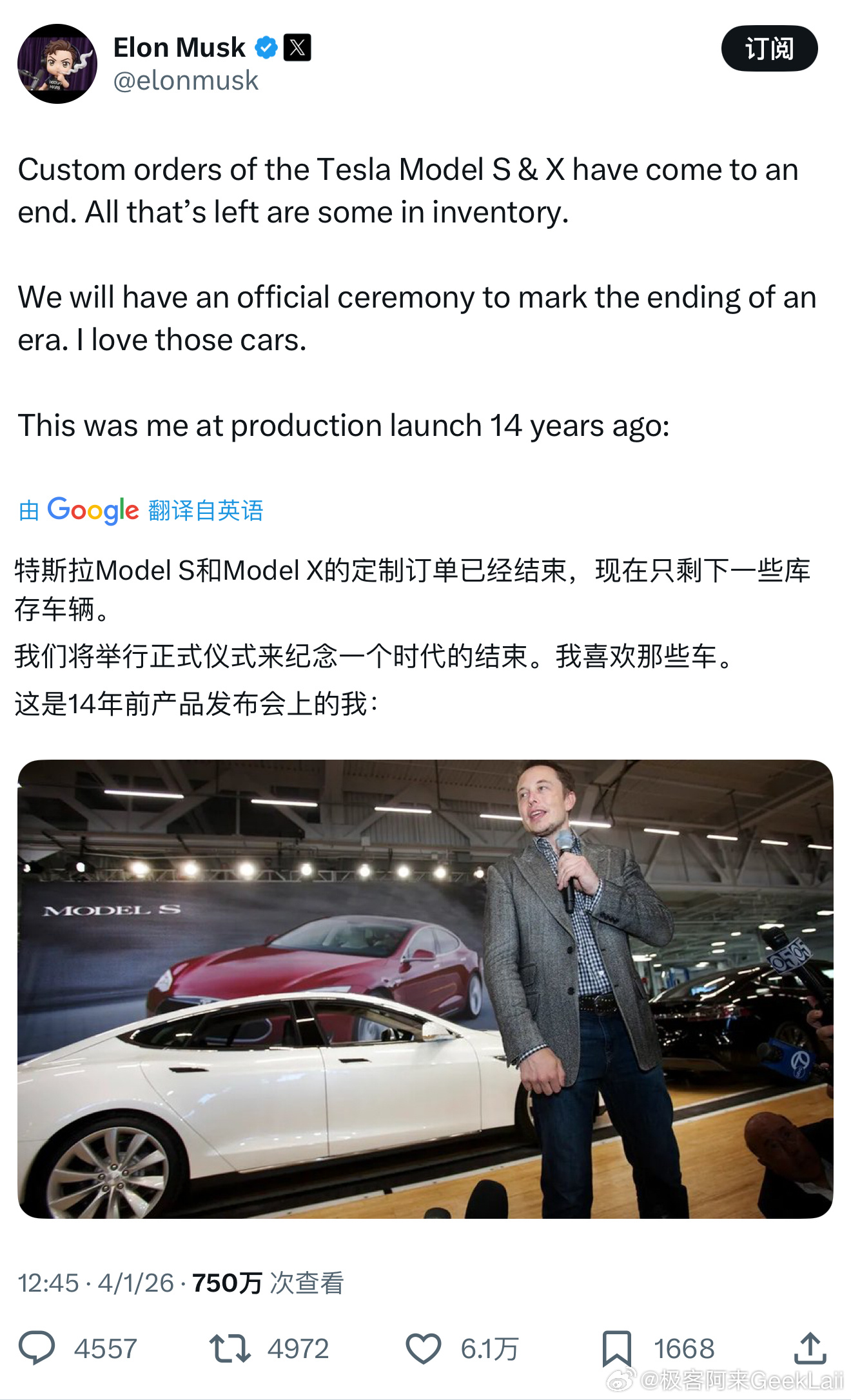 bye,Model S/X美国官网已停止定制,只能买有限的库存了