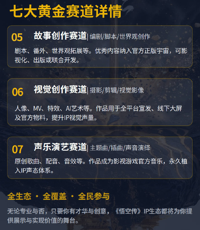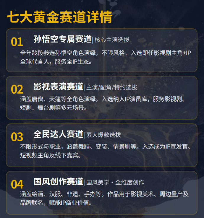 悟空传全球海选悟空传,热血启航!全球海选正式开启,邀你共赴一场关于热血、自由与信仰的冒险。无论你是心怀热爱的追梦人,还是身怀绝技的创作者,这里都是你的舞台。以悟空之名,赴山海之约,让我们一起书写属于自己的传奇!悟空传开启全球海选