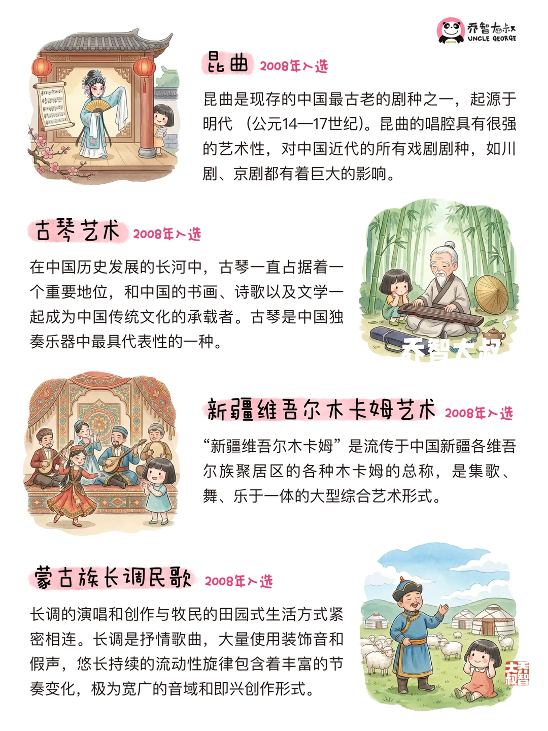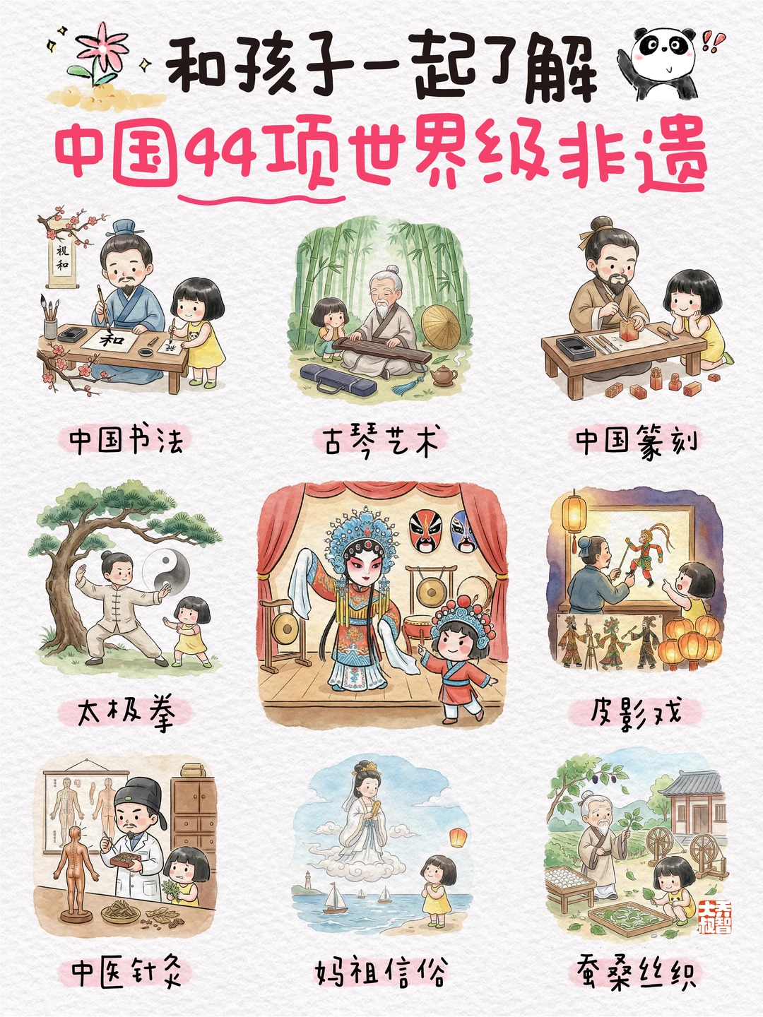 🔥骄傲!中国 44 项世界级非遗,数量全球第一 截至 2024 年底,联合国教科文组织认证,中国共有 44 项世界级非遗,稳居世界首位 [星R]39 项代表作 [星R]4 项急需保护 [星R]1 项优秀实践名册 从千年昆曲、古琴雅韵 到太极拳的悠然、春节的万家团圆 每一项都是老祖宗的智慧 更是被世界认可的中国文化名片 带孩子一起解锁这 44 个宝藏非遗 每天一个小知识点 悄悄种下文化自信的种子🌱