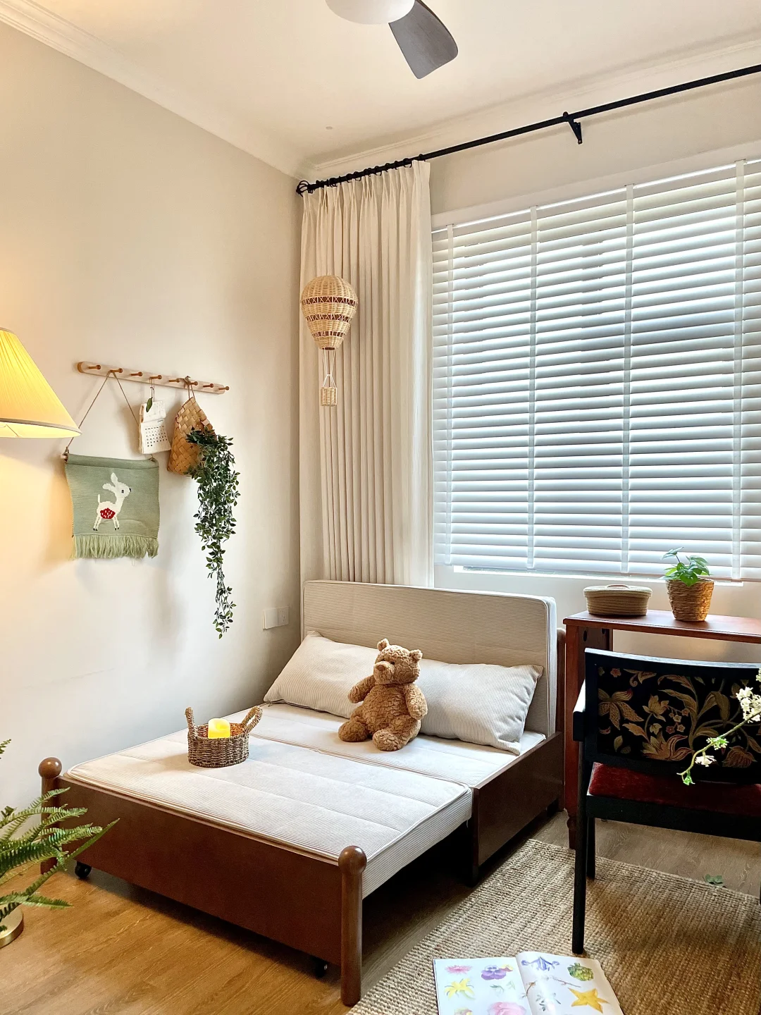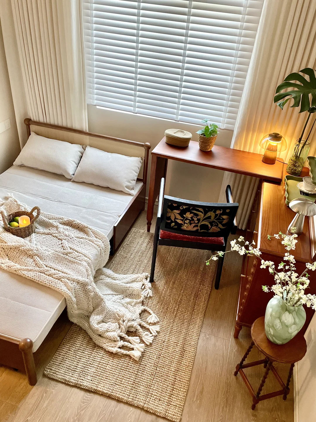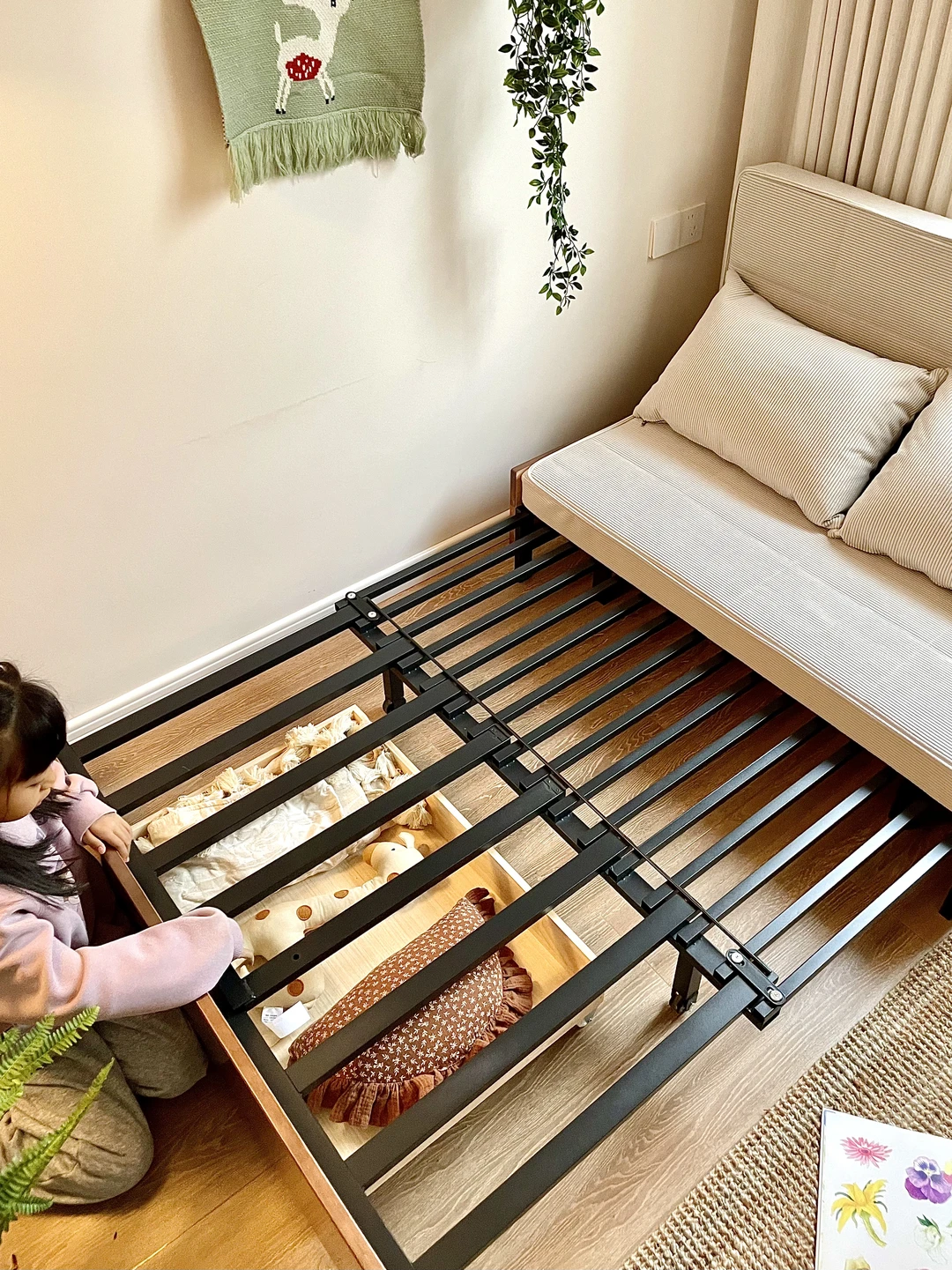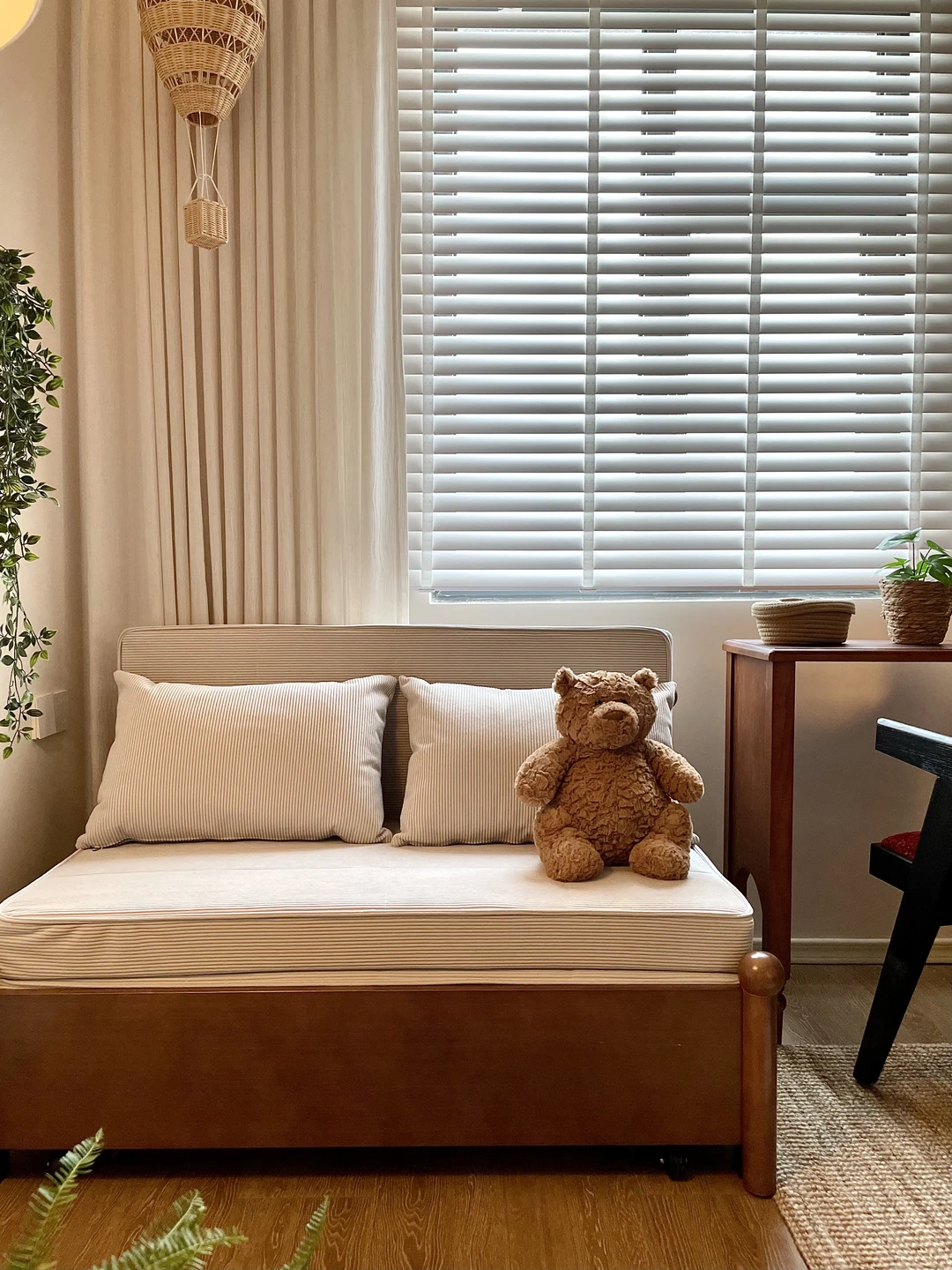 巴掌大的小卧室既要颜值又要实用,我家只有8平米的小房间,原本只放了妆台柜当办公区,最近想把房间改造一下,亲戚朋友来了也可以留宿休息,挑选了好久,终于入手伊思帕这款推拉沙发床,直接把小卧室变成书房+客房,别提有多实用啦! · 平时折叠起来就是1.25米的小巧沙发🛋️,不占空间还特别实用,窝在上面追剧、看书都很惬意~拉开秒变长1.92米单人床🛏️,偶尔亲戚朋友来家里留宿也不用发愁啦,真的做到了“一物多用”~ · 藤编元素搭配实木框架,复古又高级,灯芯绒面料厚实摸起来质感十足,靠包和坐垫都是可拆洗的,打理起来超省心!椰棕+海绵的垫子很舒服,久坐不塌,底部还自带储物箱收纳日常物品,拿取也很方便! 8平米也能拥有休闲、睡眠、办公于一体的多功能小天地,幸福感满满~小卧室的姐妹真的可以闭眼冲!