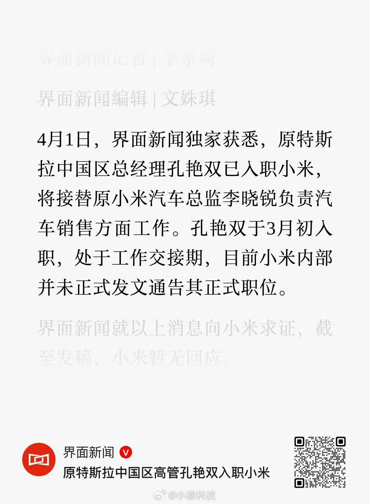 有趣的是,小米汽车一直就是对标特斯拉直营模式,之前销售端存在短板,销售流失率偏高。这次挖人核心是落地特斯拉成熟的销售运营经验,有了销售端加强,未来月交付5万都不是问题原特斯拉中国区高管入职小米