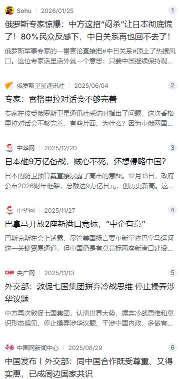 俄罗斯专家表示:日本之所以挑衅中国,巴拿马之所以敢不给中国面子,那还不是因为中国还是太“软”了。 麻烦看官老爷们右上角点击一下“关注”,既方便您进行讨论和分享,又能给您带来更多优质的内容,感谢您的支持! 最近网上有个说法挺火的,说是俄罗斯那边的专家在琢磨东亚这块的局势时,撂下一句话:日本现在敢这么跳脚,巴拿马那边时不时也在合作上反复,说白了,就是觉得咱们中国还是太“软”了。这话乍一听有点刺耳,但仔细咂摸一下,再结合最近发生的一连串事儿,你会发现这背后藏着不少门道,甚至跟咱们平常过日子想的“老实人吃亏”是一个理儿。 要说日本现在的状态,用咱们老百姓的话讲,那就是“急眼了”。你看他们新公布的2026财年防卫预算,直接干到了9万亿日元,创了历史新高,光这一项就占了GDP的2%。这钱花哪儿了?主要是买远程导弹、搞无人作战系统,还计划在琉球群岛那边把旅团升级成师团,在石垣岛、宫古岛上建导弹基地。首相高市早苗更是直接放话,说什么台海有事就算日本的“存亡危机事态”。表面上看张牙舞爪,其实背后是满满的战略焦虑。咱们现在的经济体量摆在那儿,是日本最大的贸易伙伴,日本汽车、半导体、化妆品哪样离得开中国市场?可他们又怕咱们崛起挤压了他们的生存空间,心里虚得不行,只能靠这种“比嗓门大”的方式来给自己壮胆。 可咱们这边什么反应?说实话,跟以前那种“强烈抗议”的路子不太一样了。外交部发言人说话越来越直白,针对日本要在冲绳部署雷达、监视咱们航母的事儿,直接反问:你们这是不是又要走军国主义的邪路?更重要的是,咱们出手稳准狠。去年年底,外交部直接宣布制裁日本前自卫队统合幕僚长岩崎茂,冻结他在华资产,禁止入境。这人退休后跑去给台湾当局当顾问,咱们这一招就是明确告诉日本:别想着打“擦边球”,谁碰红线谁就得挨板子。这种“闷杀”式的打法,让日本很难受,它想吵又找不到对象,想闹又怕咱们真动手。 至于巴拿马那边的事儿,就更典型了。很多人觉得,一个中美洲小国,怎么敢在跟咱们合作的港口项目上态度反复?其实这恰恰说明了大国博弈的复杂性。巴拿马运河那两头的重要港口,以前是李嘉诚的长和在运营,美国一直眼红,说这是中国“控制”了运河。今年美国那边贝莱德财团想花228亿美元把这港口买走,这哪是纯商业行为?分明是想在咱们的贸易大动脉上卡脖子。面对这种情况,咱们没像有些人想的那样去“求”巴拿马,而是直接动用了《反垄断法》审查,告诉交易各方:中远海运必须拿到控股权,否则别想通过。结果怎么样?这笔大买卖直接僵在那了,贝莱德和地中海航运那边直呼“接受不了”,但白宫也只能干瞪眼。你看,这就是底气。 咱们再回过头看巴拿马的态度,其实挺有意思的。巴拿马运河管理局局长最近在新闻发布会上,面对记者追问“把港口给中国企业会不会惹恼美国”,人家直接来了句“船到桥头自然直”。什么意思?就是说,美国你嚷嚷你的,我该招标招标,中远海运、长荣海运这些有意向的,大家公平竞争,我巴拿马得先把自己的经济利益放在第一位。这种中小国家在大国夹缝中求生存的“摇摆”,其实恰恰说明了咱们影响力的存在。要是咱们真“软”,人家犯不着为了照顾咱们的面子去得罪美国,直接听美国的就行了。 很多人觉得咱们“软”,是觉得咱们老是在讲“和平发展”,在外交争端里太克制。但这几年,情况已经变了。外交部在回应七国集团指责时,直接怼回去,说他们“罔顾事实、颠倒黑白”。面对美国110亿美元的对台军售,发言人话说的很重,警告美方“以武助独只会引火烧身”。这种姿态上的转变,不是变“硬”了,而是更“实”了。咱们不再纠结于打口水仗,而是该巡航巡航,该制裁制裁,该审查审查。就像俄罗斯那位专家后来也承认的,这种“不回应”不是怂,是最高级的太极推手——你打你的,我打我的,我手里攥着实弹,看你还能蹦跶多久。 其实,说到底,不管是日本还是巴拿马,它们的举动都验证了一个道理:在国际上混,光靠讲道理是不够的,还得让人家看到你的决心和实力。以前咱们可能更愿意用经济合作、互利共赢来交朋友,这叫“给实惠”。现在咱们在“给实惠”的基础上,开始明确“划红线”。你日本想在台海搞事?对不起,不管是前自卫队高官还是现任政客,只要敢伸手,我就敢斩断。你巴拿马因为美国压力想毁约?没关系,我中企退出可以,但谁也别想轻松接手,这买卖我做不成,你也别想做成。 这种“柔中带刚”的变化,其实是咱们这几年在国际上慢慢摸索出来的。以前咱们总想着息事宁人,觉得经济发展好了,朋友自然就多了。但现在发现,光当“老好人”不行,有时候就得露出点锋芒。你看现在周边国家,比如越南、新加坡,跟咱们搞“澜湄签证”,互免签证,人员往来热络得很。为什么?因为他们看明白了,跟中国合作既受尊重又得实惠,而且中国现在确实有实力维护地区的稳定。