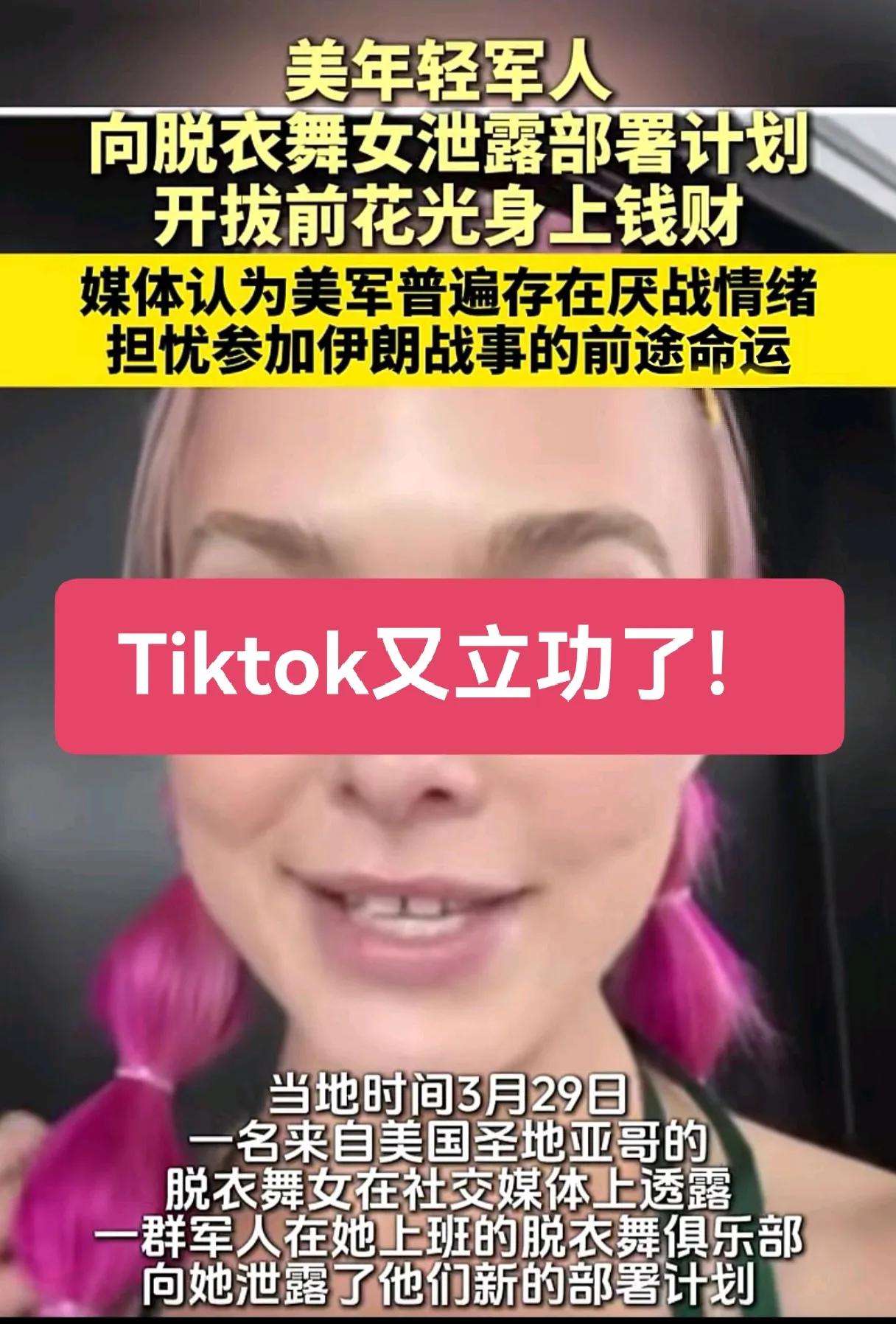 美军丑闻炸锅!士兵战前泄部署,厌战情绪藏不住了! 美国圣地亚哥曝出离谱泄密事件,脱衣舞女查姆·戴兹在tiktok公开爆料,驻地美军士兵(含海豹突击队相关驻地人员)在俱乐部纵情挥霍,大把挥霍钱财,泄露出下周开拔中东的军事部署,全员神情沮丧,心态崩溃,这是怕钱在人没了。 此事直接惊动美军高层,军官紧急发声警告官兵严守保密纪律,而时间线恰好与美军“的黎波里”号搭载3500兵力赴中东针对伊朗的行动高度吻合。 这些士兵临战前疯狂花钱,并且随意泄密,说白了不是军纪松懈那么简单,这是被伊朗打怕了,美军基地都防不住,他们去了也是白搭。也足以说明这场针对伊朗的军事行动,完全不得人心,他们不想为以色列而战,不想成为炮灰,士兵的士气系统性崩溃。