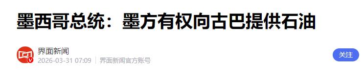 墨西哥总统克劳迪娅·欣鲍姆表示,墨西哥将出于人道主义和商业目的向古巴输送燃料,并将不再遵守美国的经济封锁。 美国对古巴的经济、商业和金融封锁,从1962年就开始了,至今已经持续了60多年,给古巴带来了巨大的损失。根据古巴外长的统计,按现行价格计算,这60多年来的封锁已经让古巴累计损失超过1706亿美元,仅2024年3月到2025年2月这一年间,损失就达到75.56亿美元,成为古巴经济复苏和发展的最大障碍。 而最近一段时间,古巴的困境更是雪上加霜。古巴全国90%的电力都依赖燃油发电,但它本国的石油自给率还不到四成,每年都需要进口大量原油才能维持运转。 以前,委内瑞拉是古巴最主要的石油供应国,每天能给古巴供应超过10万桶廉价石油,撑起了古巴能源体系的半壁江山。可在2026年1月,美国对委内瑞拉发动了大规模军事打击,强行控制了委内瑞拉总统马杜罗,这就直接斩断了古巴的能源命脉。 从那以后,古巴就陷入了“油尽电枯”的绝境,过去三个月里,几乎没有任何燃料进入古巴。柴油和燃油储备急剧下降,导致古巴电网变得极其不稳定,3月份连续爆发了三次全国性大停电,1100万古巴民众都受到了影响。 停电带来的后果远比想象中严重,医院的备用发电机因为没有燃油而无法运转,哈瓦那的一家医院里,所有依赖呼吸机维持生命的重症患者都不幸离世,还有一名5岁的患病儿童,因为呼吸设备停摆而窒息身亡,这样的人道主义悲剧每天都在古巴上演。 除此之外,冷藏失效导致大量药品、食品变质,供水泵瘫痪,城市垃圾堆积,古巴民众的基本生活都受到了严重影响。 正是在这样的背景下,墨西哥总统欣鲍姆做出了向古巴输送燃料的决定。欣鲍姆明确表示,墨西哥有权基于人道主义或商业原因向古巴提供石油,而且这不一定是政府对政府之间的协议,已经有一些私营企业主动和墨方接洽,希望从墨西哥的国有企业墨西哥石油公司购买燃料,然后运往古巴。 其实,墨西哥和古巴之间长期以来就有包括石油运输在内的商业合作和人道主义援助,就算美国施压,墨西哥也没有完全中断过对古巴的支持。 大家都知道,美国之前一直对向古巴输送石油的国家施加压力,甚至威胁要对这些国家的输美商品加征从价关税,之前墨西哥也曾因为这种威胁,暂停过对古巴的石油运输,这也引发了墨西哥国内的不同声音。 反对派质疑政府在对古石油运输问题上缺乏透明度,还质疑相关项目的法律合理性,但也有很多前总统洛佩斯的支持者积极响应,主动捐赠食品、燃料和药品,支持对古巴的援助。 不过这一次,墨西哥没有再被美国的威胁吓住,欣鲍姆直接表态将不再遵守美国的经济封锁。她强调,只有古巴人民能够决定自己国家的命运,经济封锁最终伤害的是普通民众,这是极不公正的。 而且欣鲍姆也提到,美国方面近期释放出了一些“灵活信号”,比如美国总统特朗普3月29日就表示,他不反对其他国家向古巴供应石油,不管是俄罗斯还是其他国家,美国都没有任何意见,这或许也是墨西哥敢于公开表态的一个原因。 其实,墨西哥做出这个决定,既有人道主义的考虑,也有商业层面的考量。从人道主义来说,古巴的民众正处于水深火热之中,燃料短缺已经不是经济问题,而是生死存亡的考验,墨西哥作为邻国,伸出援手也是情理之中。 从商业来说,墨西哥本身有丰富的石油资源,向古巴输送燃料,也是正常的双边商业合作,能促进两国的经济往来,对双方都有好处。而且墨西哥一直以来都坚持独立自主的外交立场,不想被美国的霸权主义左右,这次拒绝遵守美国的经济封锁,也是在维护自己国家的主权和利益。 这件事虽然看起来只是墨西哥向古巴输送燃料这么简单,但背后反映的是美洲地区的地缘政治博弈。 美国长期以来奉行“唐罗主义”,也就是特朗普版的门罗主义,想要确立自己在西半球的绝对主导权,对古巴的封锁、对委内瑞拉的军事打击,都是这种霸权主义的体现。 而墨西哥这次的表态,相当于公开反抗美国的霸权,告诉美国,不是所有国家都要听从它的指挥,每个国家都有权利决定自己的外交政策和合作对象。 值得一提的是,国际社会大多都反对美国对古巴的封锁,从1992年开始,联合国大会每年都会审议终止美国对古巴封锁的决议草案,每次都能得到国际社会的压倒性支持。墨西哥这次的行动,也顺应了国际社会的潮流,不仅能帮助古巴缓解燃眉之急,也能带动更多国家站出来,反对美国的单边封锁政策。