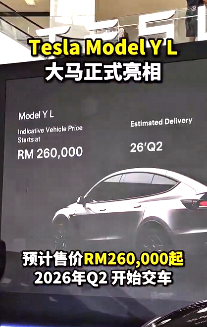 Model Y L 今天也开始在马来西亚卖了,RM 26 万起步,约等于 44.5 万人民币。也是上海超级工厂产的,最大的区别是右舵。