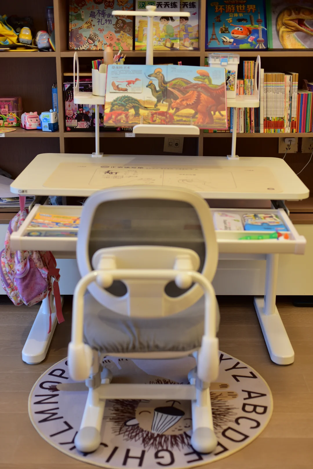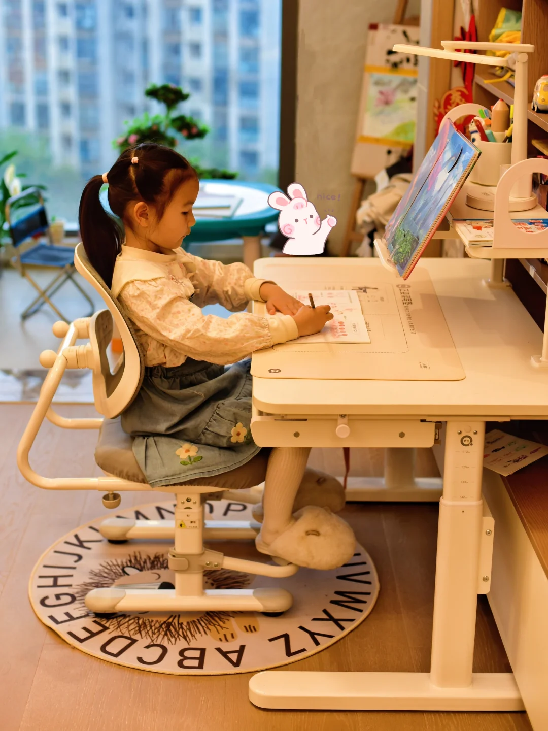 🏕️带娃走遍四方,回家也要好好读书📚 开学一个月实测,选对学习桌真的太省妈! 出门习惯了井然有序,在家学习也不能乱。 👧🏻最近给小丸子安排了青节大白桌+育英椅, 不用催、不用吼,写作业、看绘本、英语打卡自动坐到位,书包文具全都收纳整齐,再也不会满天飞~ 👍🏻极简桌面不分散注意力,桌椅都能自由调节高度,跟着孩子身高慢慢“长个子”,从幼儿园一直用到高中完全没问题。桌面和椅子高度轻松微调,坐姿更舒服,不用频繁换家具,省心又耐用。 ❤️一边看世界,一边养习惯, 遛娃和学习,终于可以两不误✨