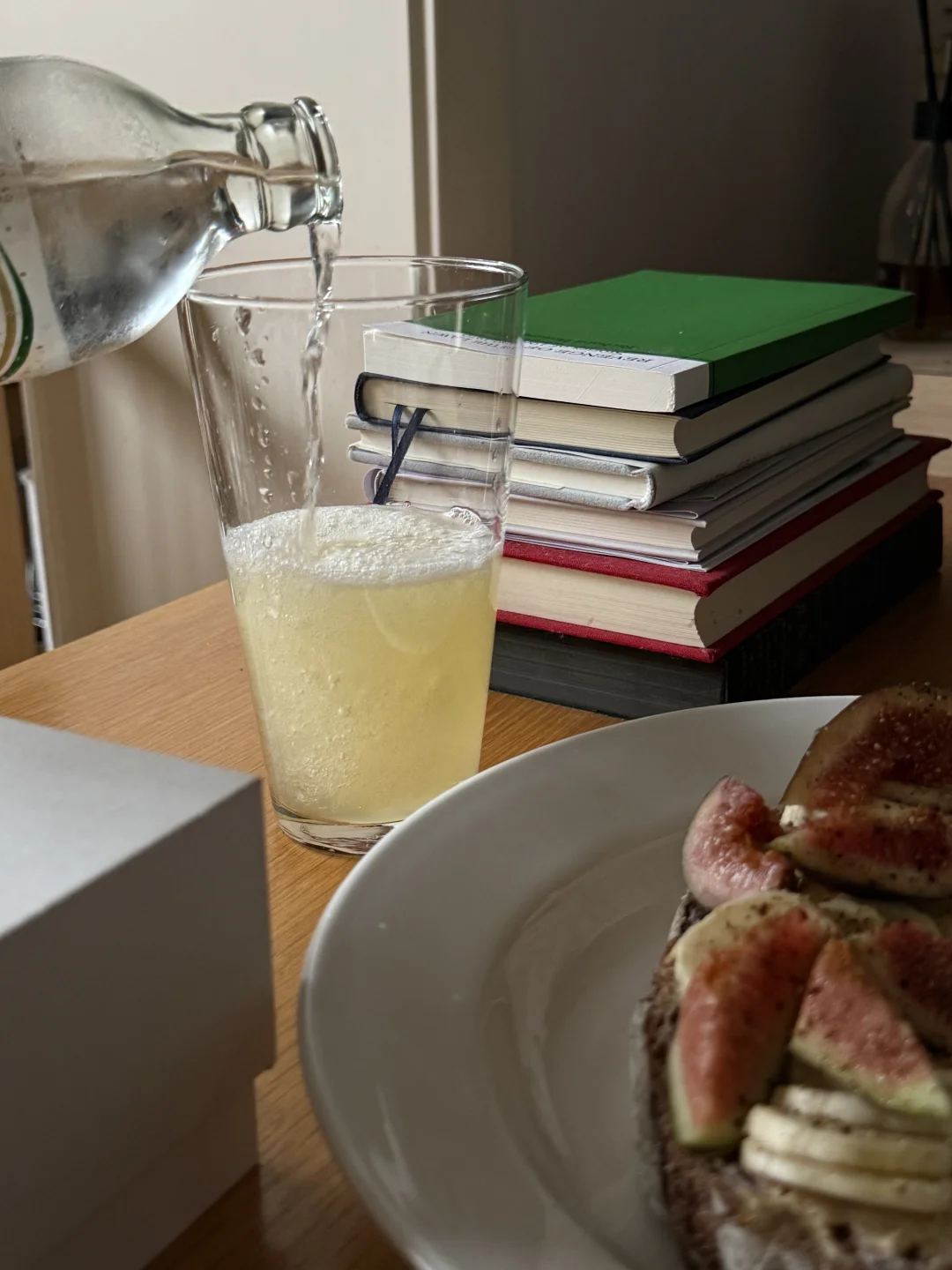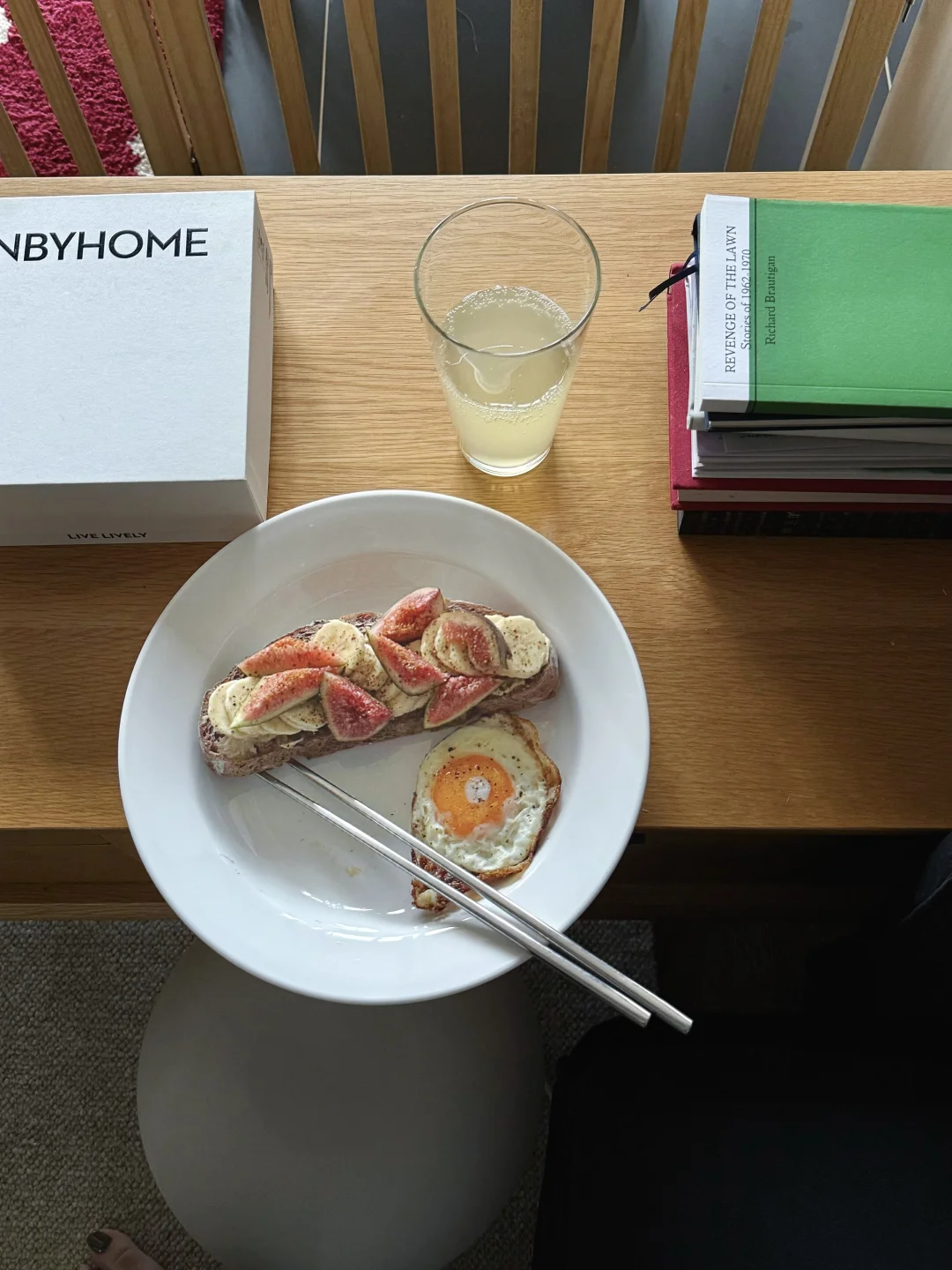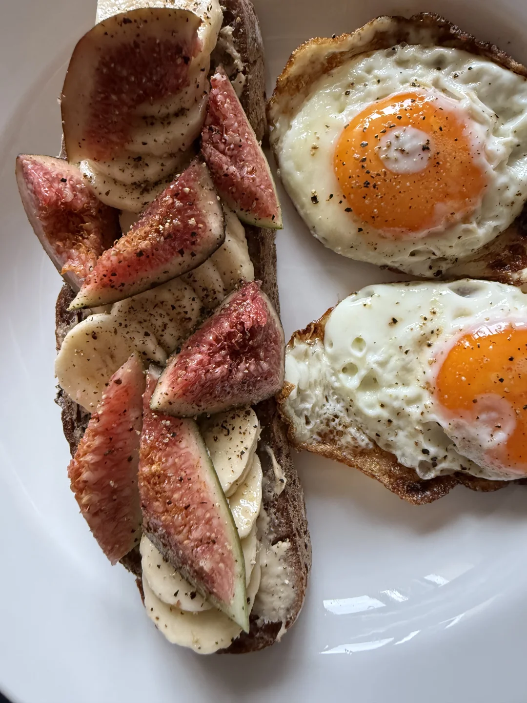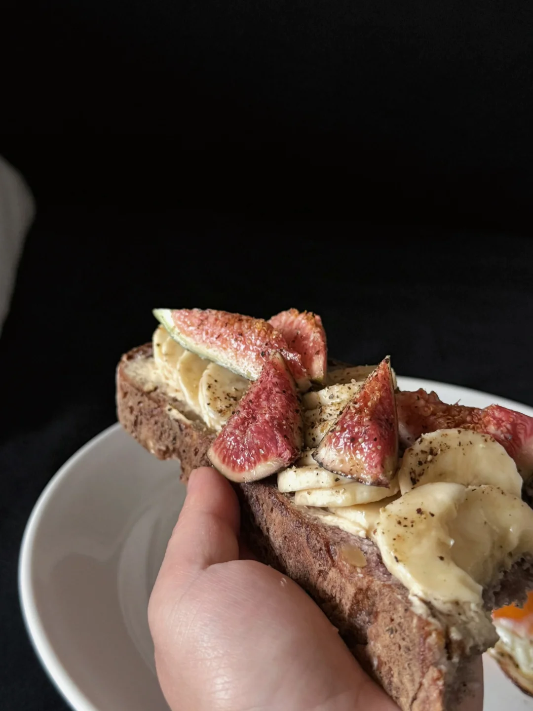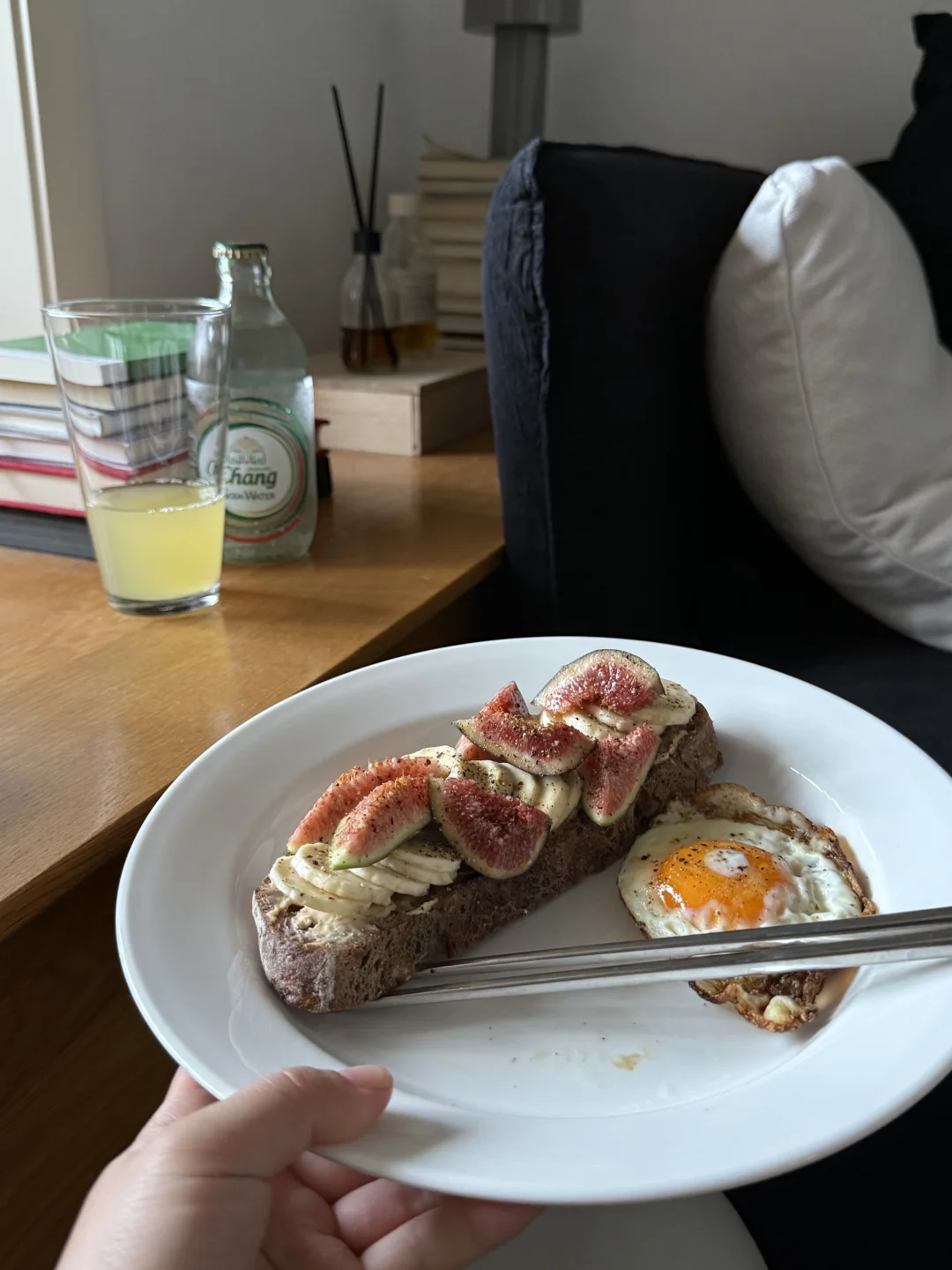 今日份大懒人的居家早餐🥞 运动完5分钟搞定 打工人早餐这块已经手拿把掐了 🥪无花果+香蕉 组合意外很搭👍 (记得要加海盐胡椒 会中和甜腻 ) 天然甜味剂混合草本的清香 酸面包烤的脆一些和软糯的食材组合 口感惊艳!! 🥛柠檬汁+气泡水 - 心得是:早餐吃得好 真的可以高能量一整天!!快做快做 !