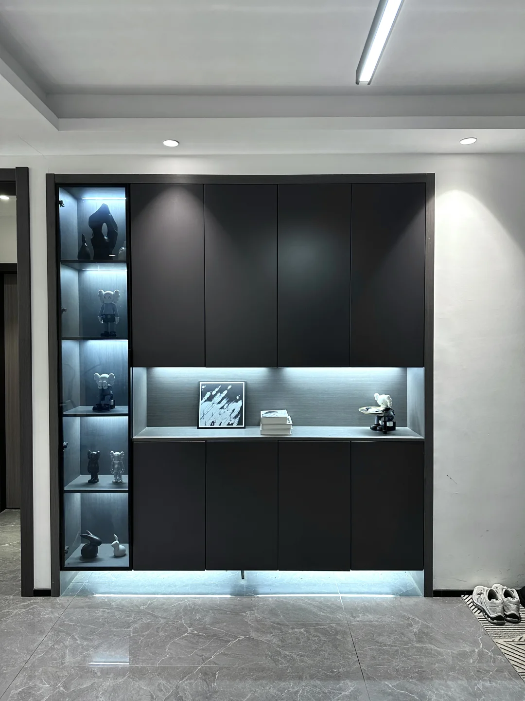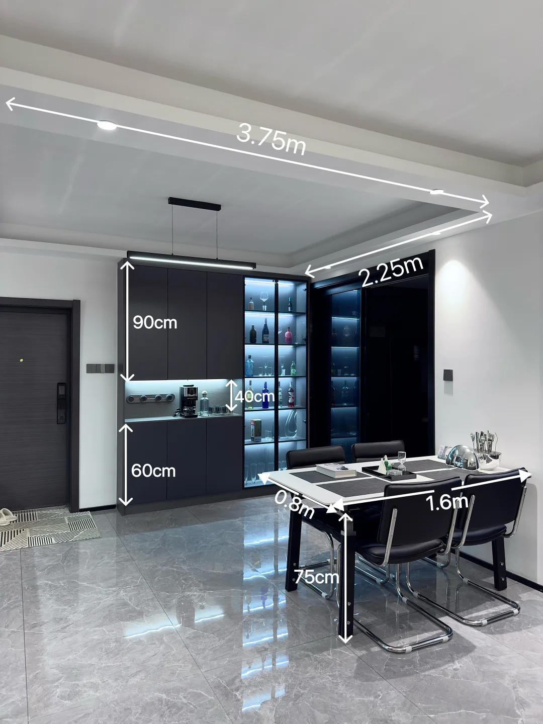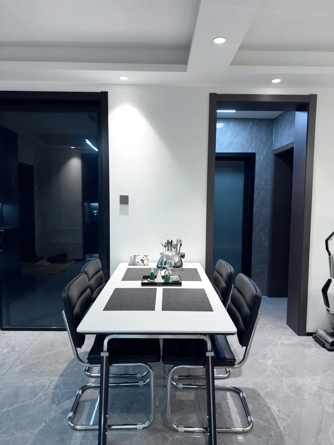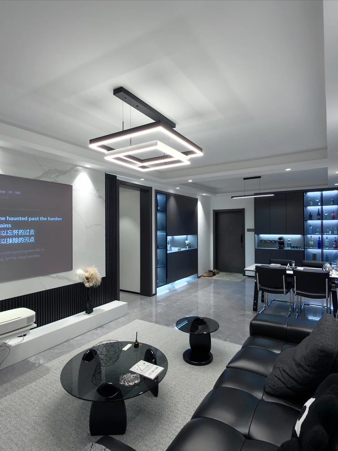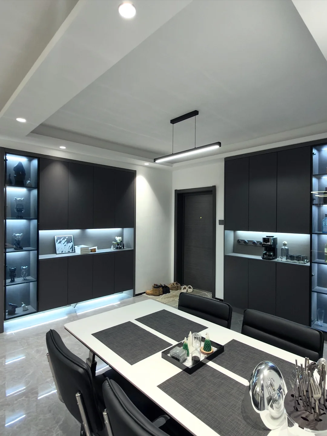 Hi,欢迎来到我的家~ 建面128平,套内115平 户型三室两厅两卫 全程自装,没有请装修公司 - 整体是黑白灰的风格 白色乳胶漆通刷,地面通铺冷灰色大砖 全屋定制柜门肤感灰,柜体科技木灰 白色岩板餐桌搭配黑色皮质座椅 岩板桌面好打理,木质金属桌腿很极简 自己装的小家真的很有成就感~
