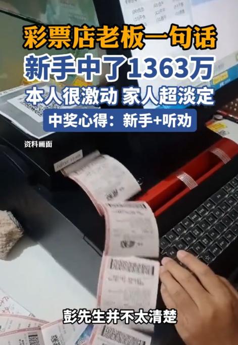 “这就是命啊!”近日,湖南长沙,一男子第一次去买彩票,机选的时候,老板随口说了句“追加投注奖金更高”,男子就照做了,没想到当晚开奖时,男子就中了1363万元!老板的话,直接让他奖金多了606万元!网友:这运气羡慕了! 事情发生在几天前的3月27日深夜,一张淡黄色的彩票纸,彻底改变了彭先生的命运,谁也没想到这张看似普通的彩票,竟然能开出1363万的巨额大奖,而这一切都源于彩票店老板一句随口的提醒。 彭先生之前从来没买过彩票,对大乐透更是一窍不通,纯属彩票界的门外汉,那天他路过街角的彩票店,一时心血来潮,就想着进去碰碰运气,没指望能中什么大奖,顶多就是图个新鲜。 因为不懂怎么选号,他就用了最省事的办法,让彩票终端机随机排布了10注号码,想着听天由命就好,就在机器准备吐票的那几秒钟,守店多年的老板,凭着自己的职业直觉,随口给了他一个建议,说要是加个追加投注,将来中了奖奖金能高出不少。 彭先生当时压根不知道“追加投注”是什么意思,也不懂其中的机制,心里没什么底。但他转念一想,老板天天守着彩票机,肯定比自己懂行,听专业人士的话,总不会吃亏。于是他没多犹豫,直接点了头,同意了追加投注。 他当时也没多想,只当是多花一点钱,图个更大概率的希望,万万没想到这一个简单的点头,竟然成了今年初春最划算的一个决定,就是这一步追加,让他的彩票从普通的运气票,变成了顶配版,也让他多赚了整整606万。 当天深夜,彩票开奖,彭先生原本没放在心上,随口查了一下号码,可看到屏幕上的数字时,他彻底懵了,自己机选的号码,竟然中了千万大奖,总奖金高达1363万。 后来他才知道,如果当时没听老板的建议,没有追加投注,他顶多只能中757万,老板那句轻飘飘的提醒,直接给了他606万的额外惊喜。 确认自己中了大奖的那一刻,彭先生兴奋得浑身发烫,血液都快冲到头顶,一整晚都没合眼,迫不及待地把这个天大的好消息告诉了家里人,换做一般人中了这么多钱,早就开始盘算着买豪车、买别墅,狂欢庆祝了。 可彭先生一家人,却冷静得让人意外,面对这笔突如其来的巨额财富,他们没有丝毫慌乱,也没有抱头狂欢,只是平静地说,日子该怎么过还怎么过,这句话也让彭先生没有被横财冲昏头脑,没有觉得自己是天选之子,更没有想着再去买彩票碰运气。 第二天一早彭先生没有因为中了大奖就旷工,依旧按时去公司打卡上班,该做什么就做什么,硬是把中了千万大奖这件天大的事,当成了生活里的小插曲。 这件事传到网上后,瞬间引发了网友们的热议,大家都直呼羡慕,纷纷吐槽,同样是买彩票,差距怎么就这么大,有的人守了十几年都没中,彭先生第一次买就中了千万,这运气真的是没谁了,说到底,这就是命啊。 (信息来源:《湖南一男子第一次买大乐透,只因听了老板一句“劝”,1363万到手了》哈尔滨日报媒体)