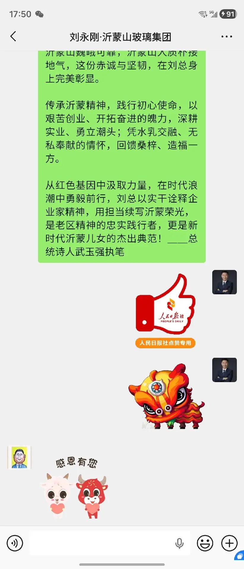致敬刘总:沂蒙风骨铸商魂 向刘永刚·沂蒙山玻璃集团刘总致以崇高敬意!扎根沂蒙沃土,尽显老区企业家担当。沂蒙山巍峨可靠,沂蒙山人质朴接地气,这份赤诚与坚韧,在刘总身上完美彰显。 传承沂蒙精神,践行初心使命,以艰苦创业、开拓奋进的魄力,深耕实业、勇立潮头;凭水乳交融、无私奉献的情怀,回馈桑梓、造福一方。 从红色基因中汲取力量,在时代浪潮中勇毅前行,刘总以实干诠释企业家精神,用担当续写沂蒙荣光,是老区精神的忠实践行者,更是新时代沂蒙儿女的杰出典范!__总统诗人武玉强执笔